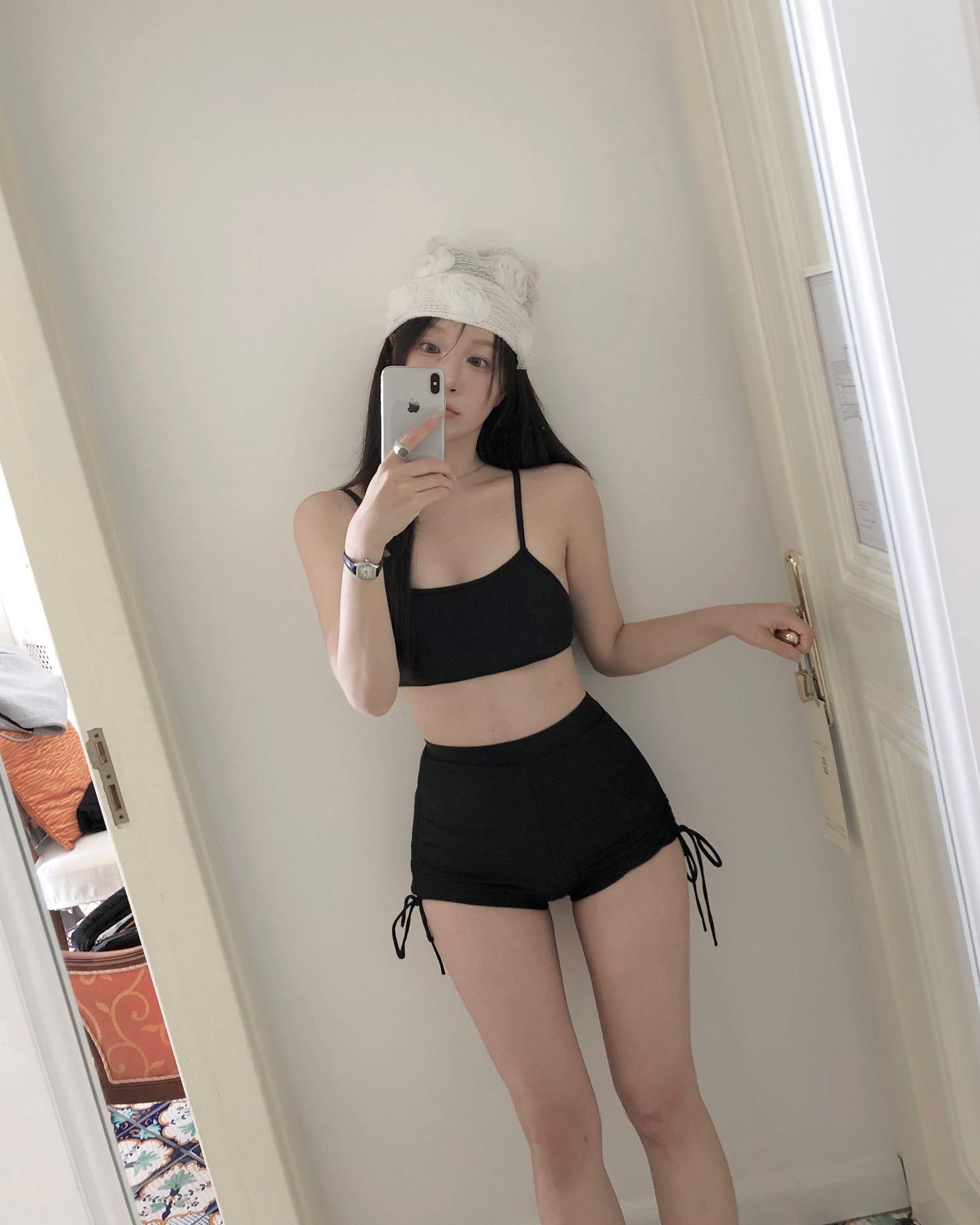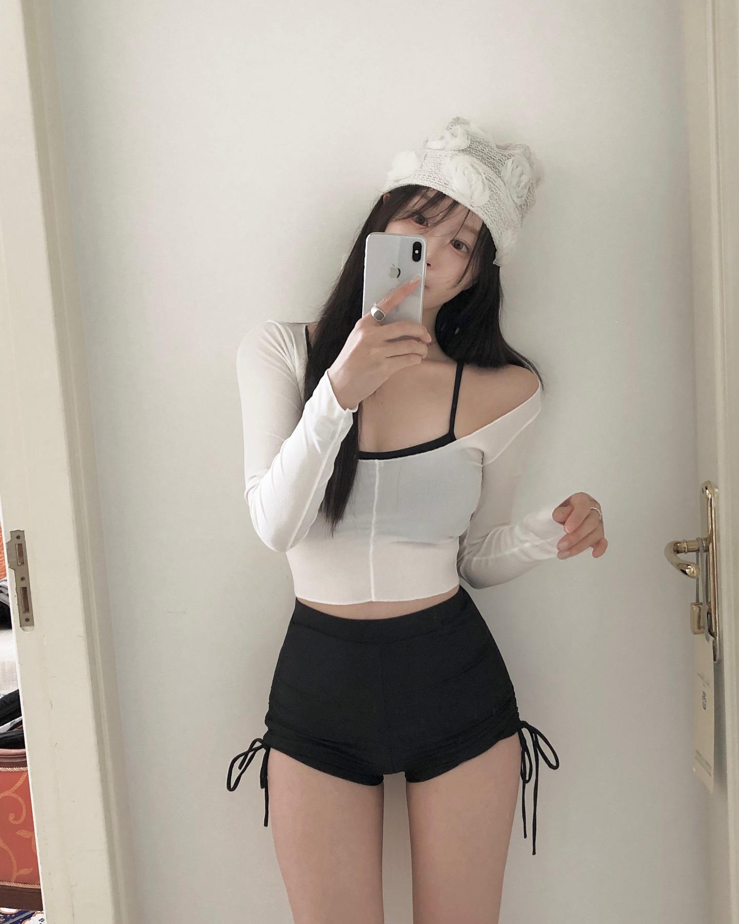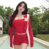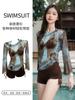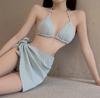 Nuevo Traje de Baño de Tres Piezas Puro Deseo Cobertura de Manga Larga Traje de Baño Dividido Vacaciones en la Playa Bikini Conservador para Mujer