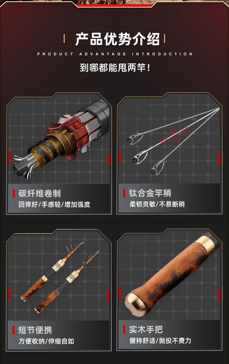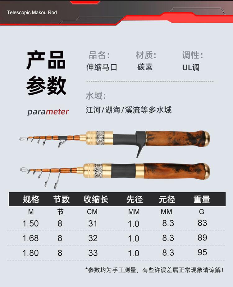 Zhenyi Segunda Generación Empuñadura de Madera Sólida Catapulta de Carbono Varilla de Hojalata UL Spinning Casting Caña para Micro Señuelos Caña para Pesca en Arroyos