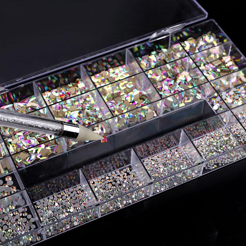 21-compartment rhinestone jewelry fluorescent (600 large rhinestones + 2500 flat-back rhinestones)