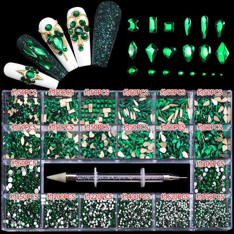 21-compartment rhinestone jewelry hole green (600 large rhinestones + 2500 flat-back rhinestones)