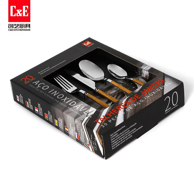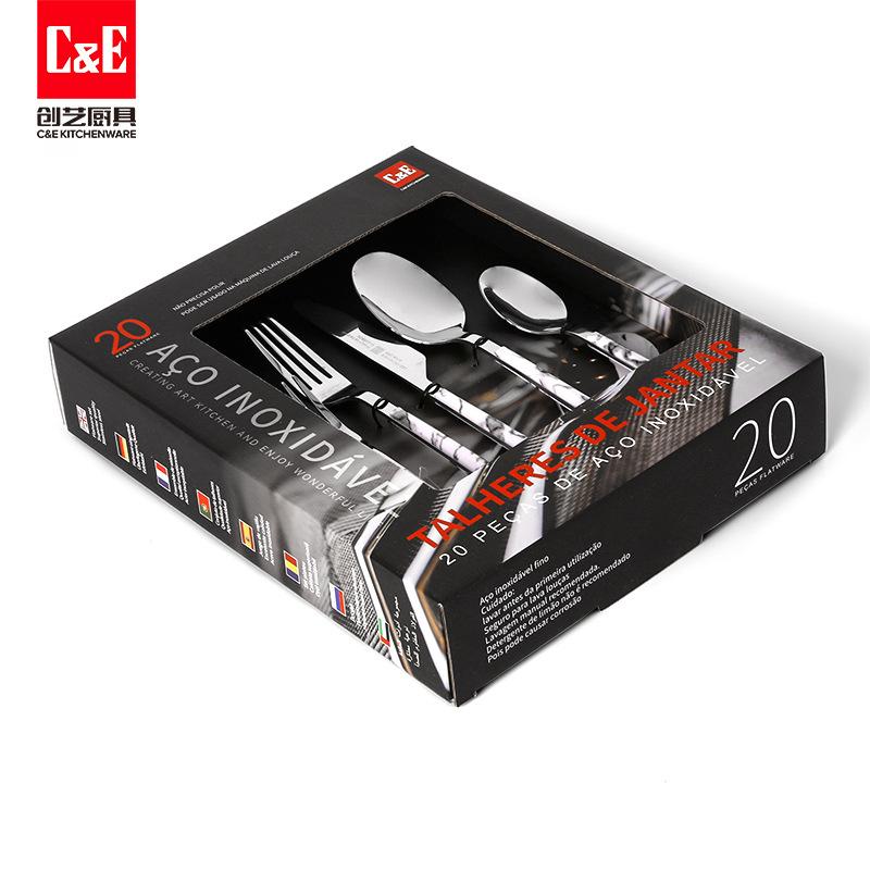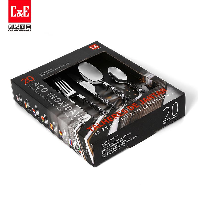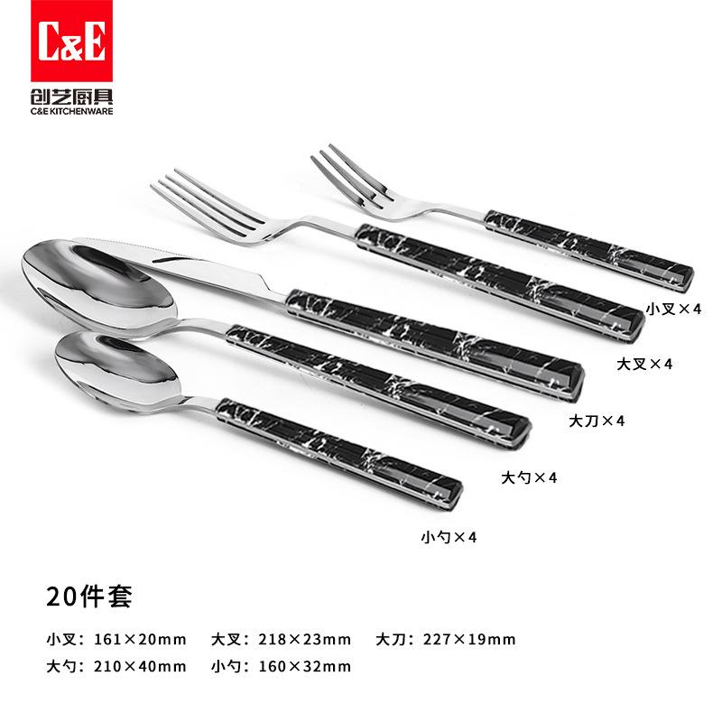 C & E Creative Art Juego de 20 piezas de Cuchillo, Tenedor, Cuchara de Acero Inoxidable Vintage Cuchillo para Cena de Bistec Cuchara de Postre Tenedor para Ensalada Restaurante Hogar