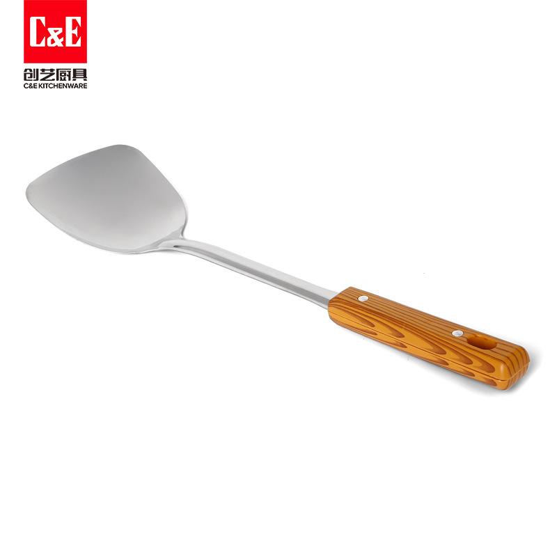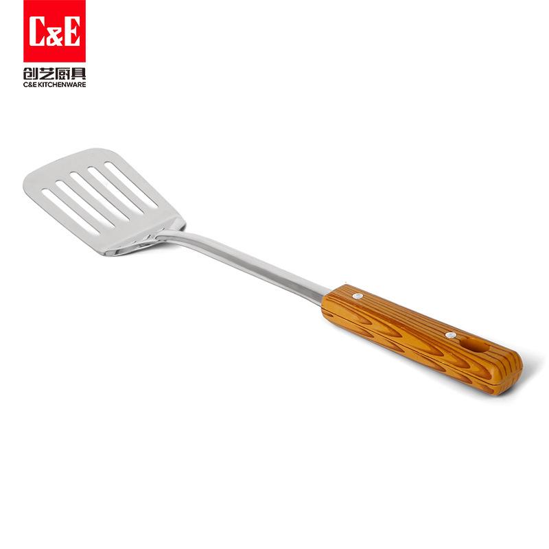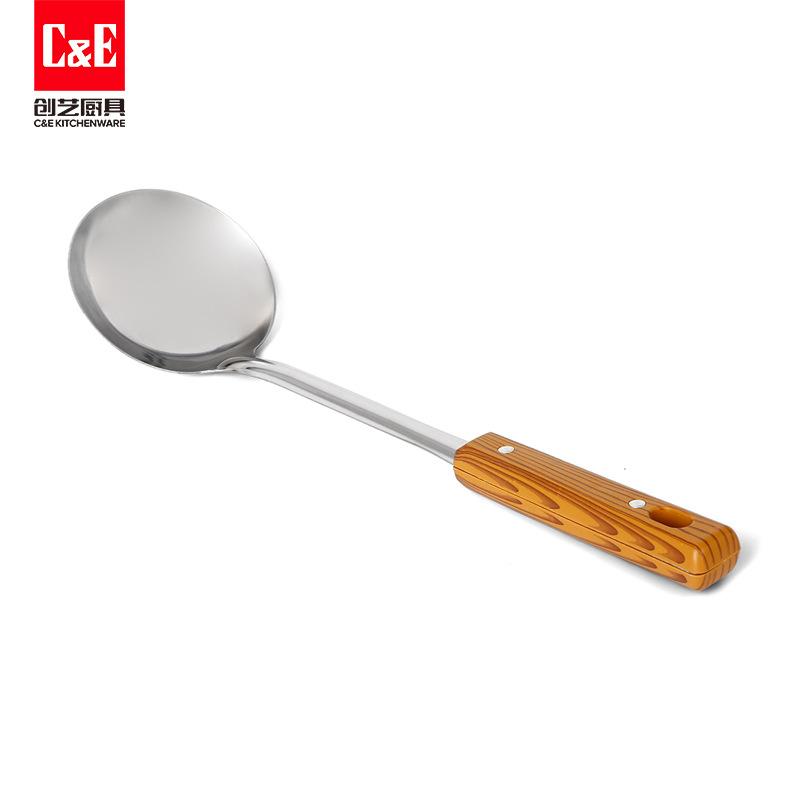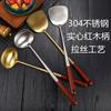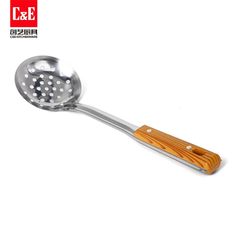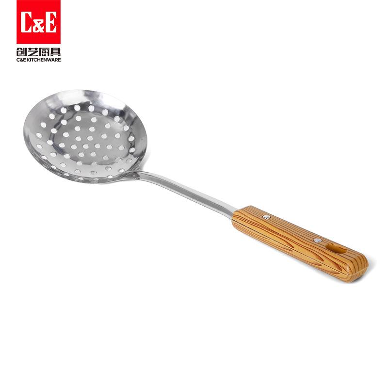 C & E Arte Creativo Olla de Acero Inoxidable Cuchara con Fugas Cuchara para Sopa Cuchara para Freír Cuchara para Arroz Mango de Madera Espátula para Sartén Utensilios de Cocina