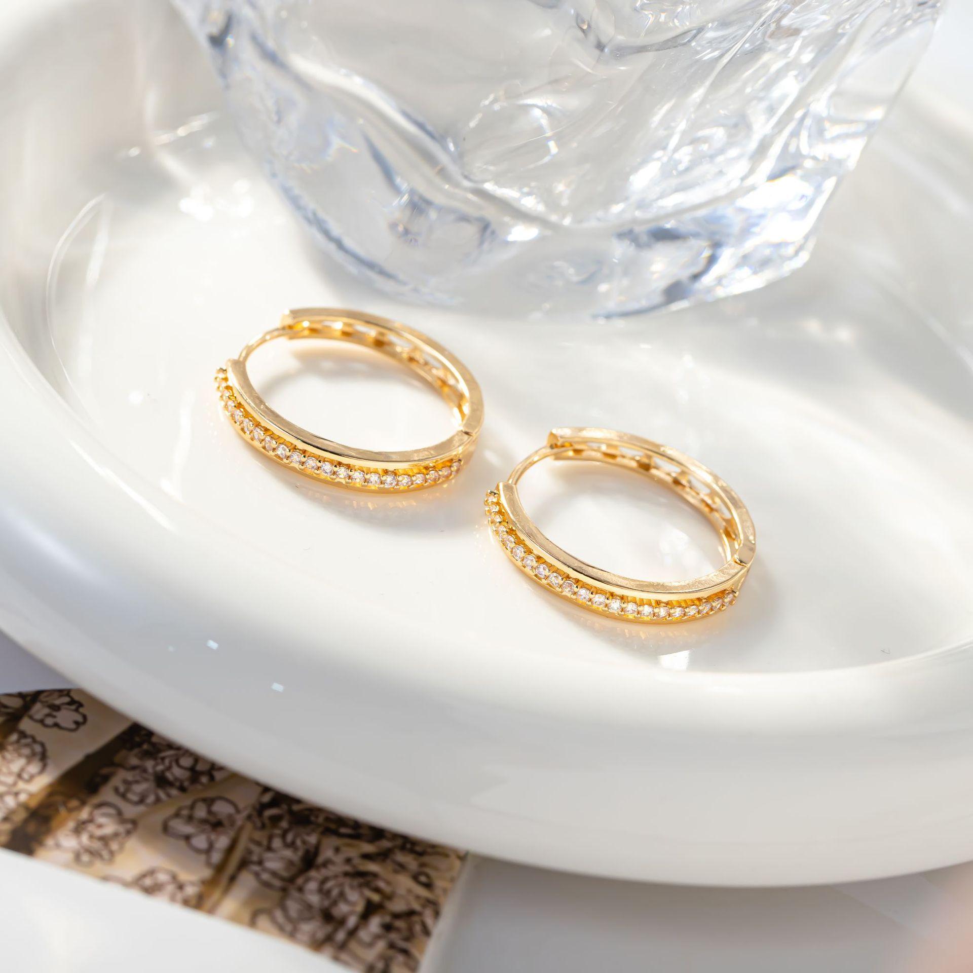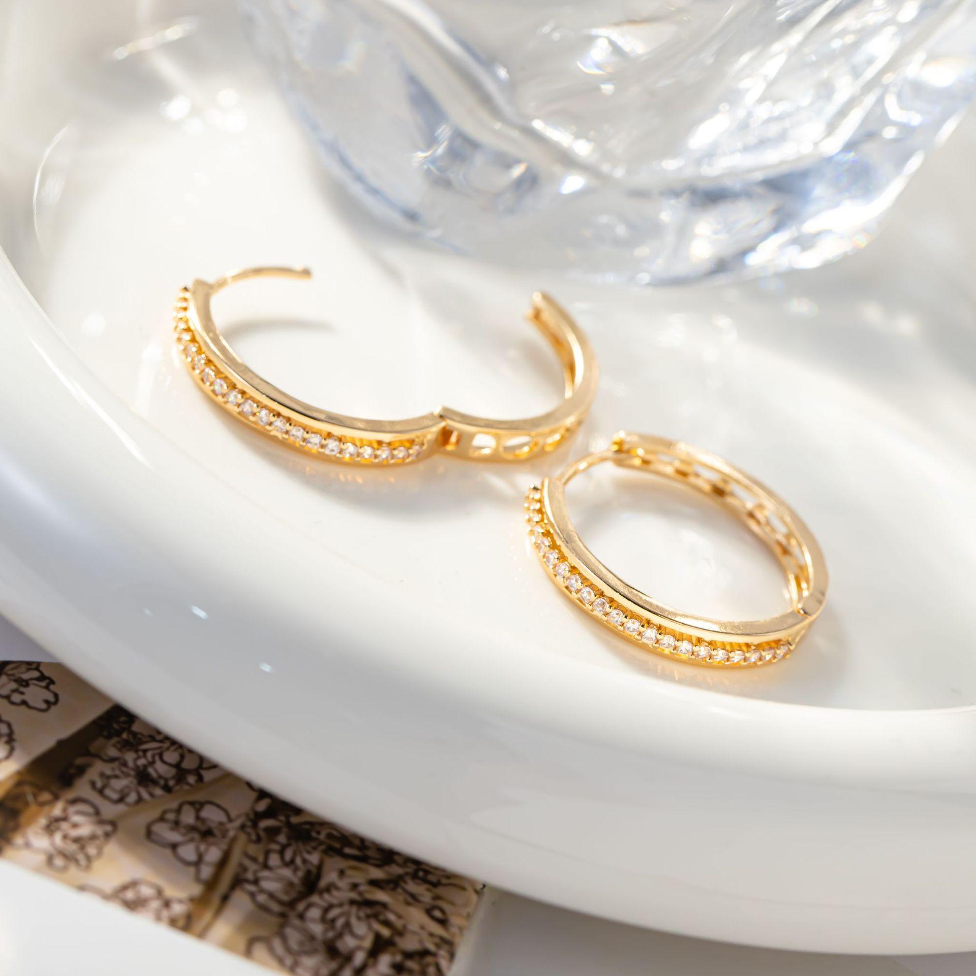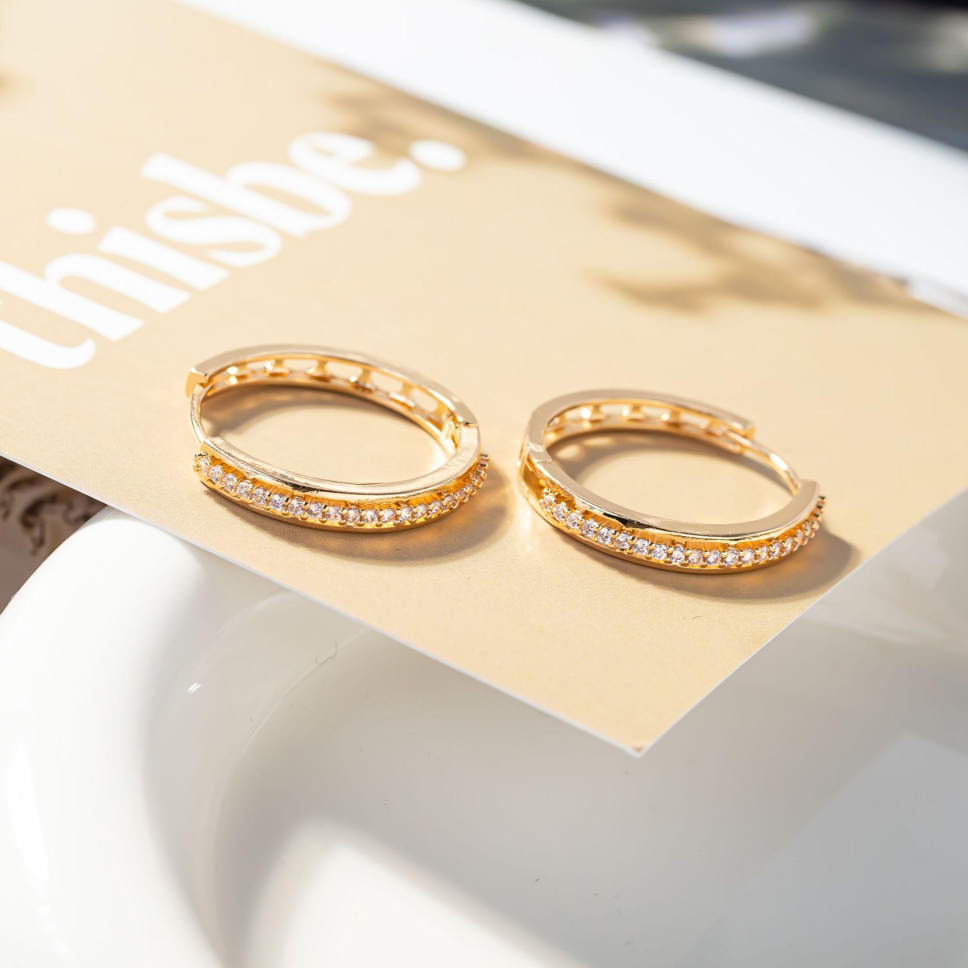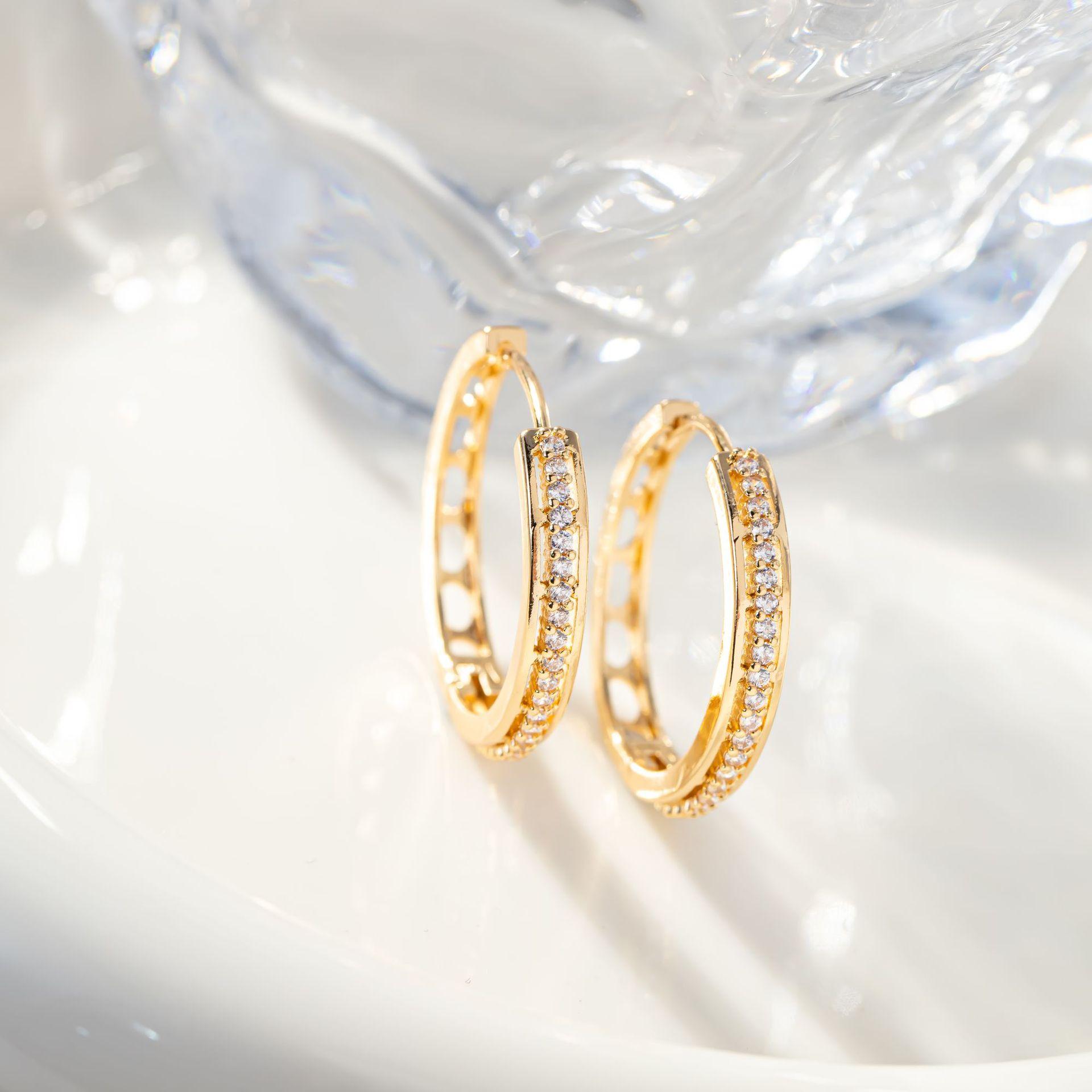 Aretes de diamantes de alta calidad con incrustaciones de diamantes de una sola fila para mujer, estilo coreano simple, círculo hueco, temperamento elegante, aretes versátiles, transfronterizo
