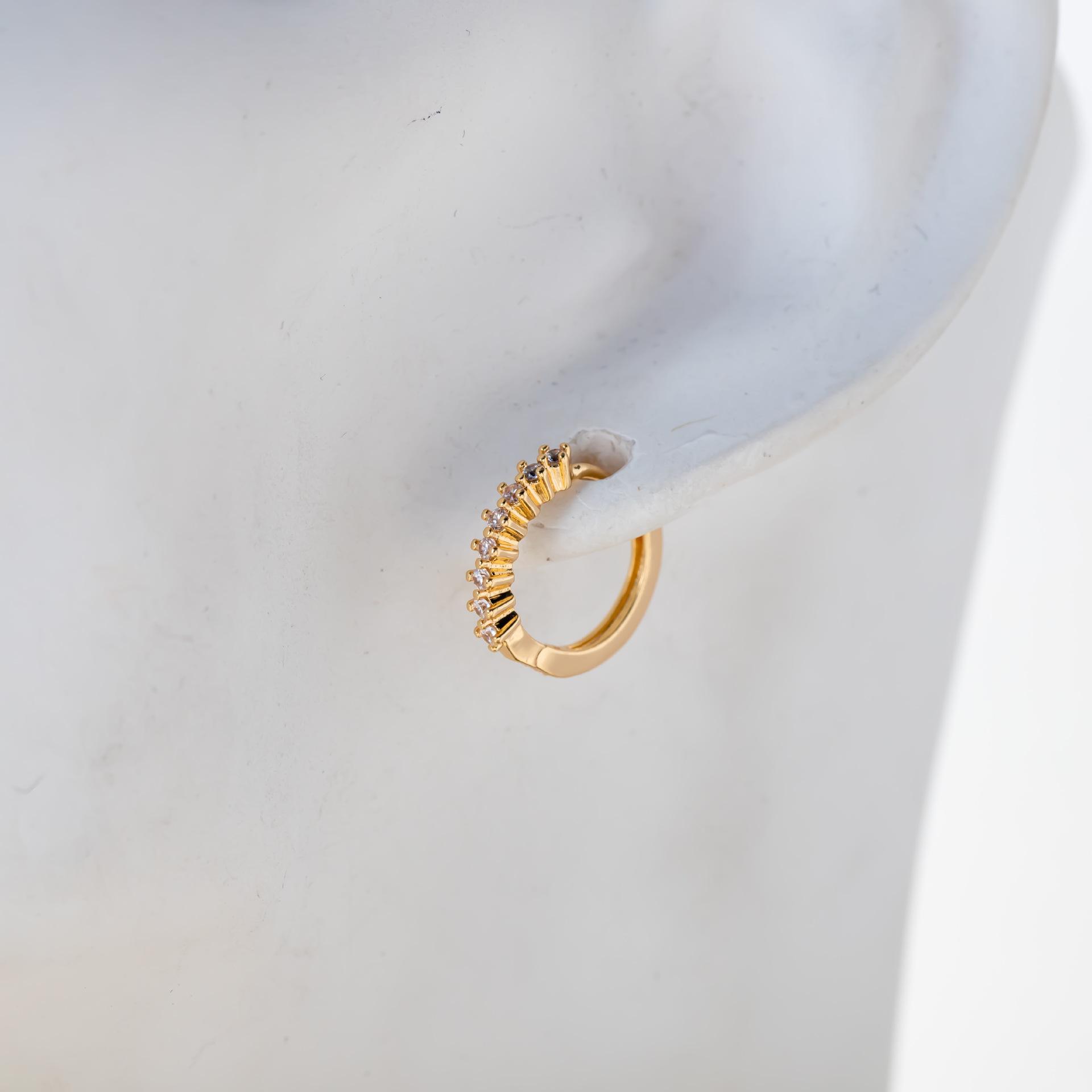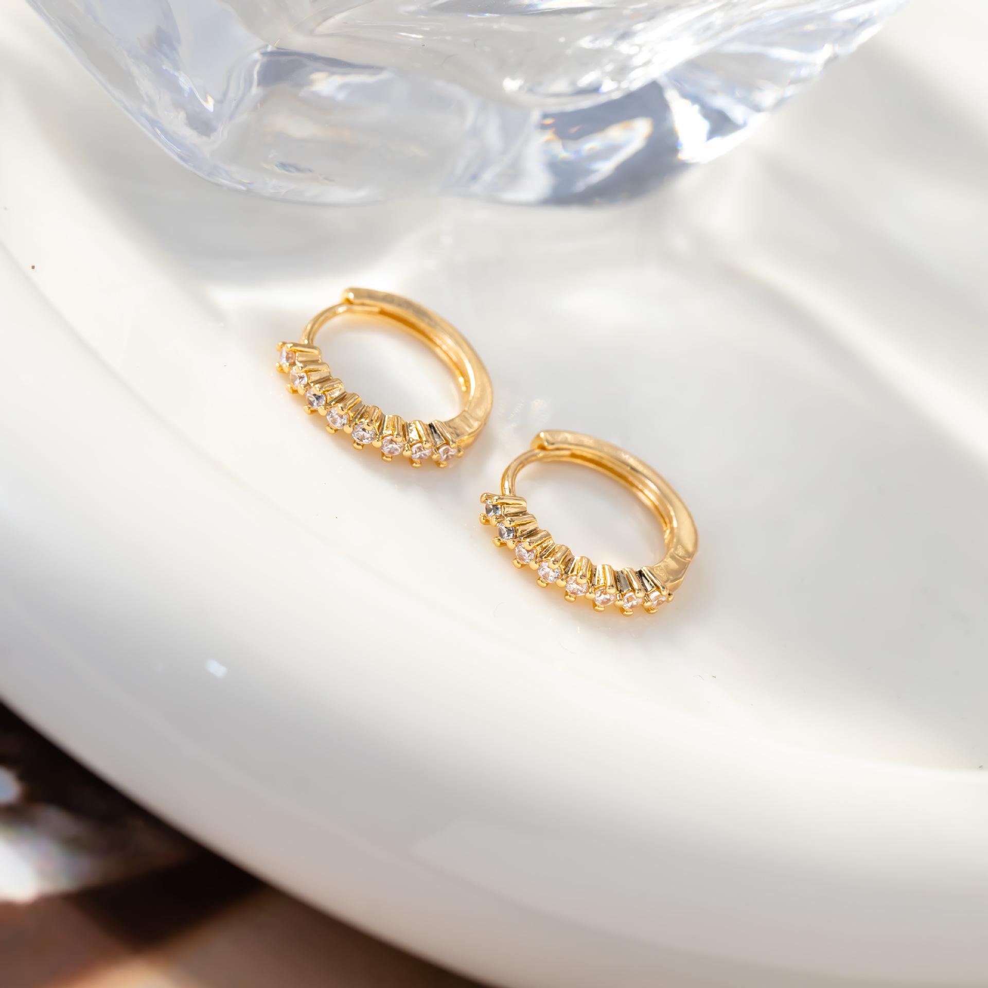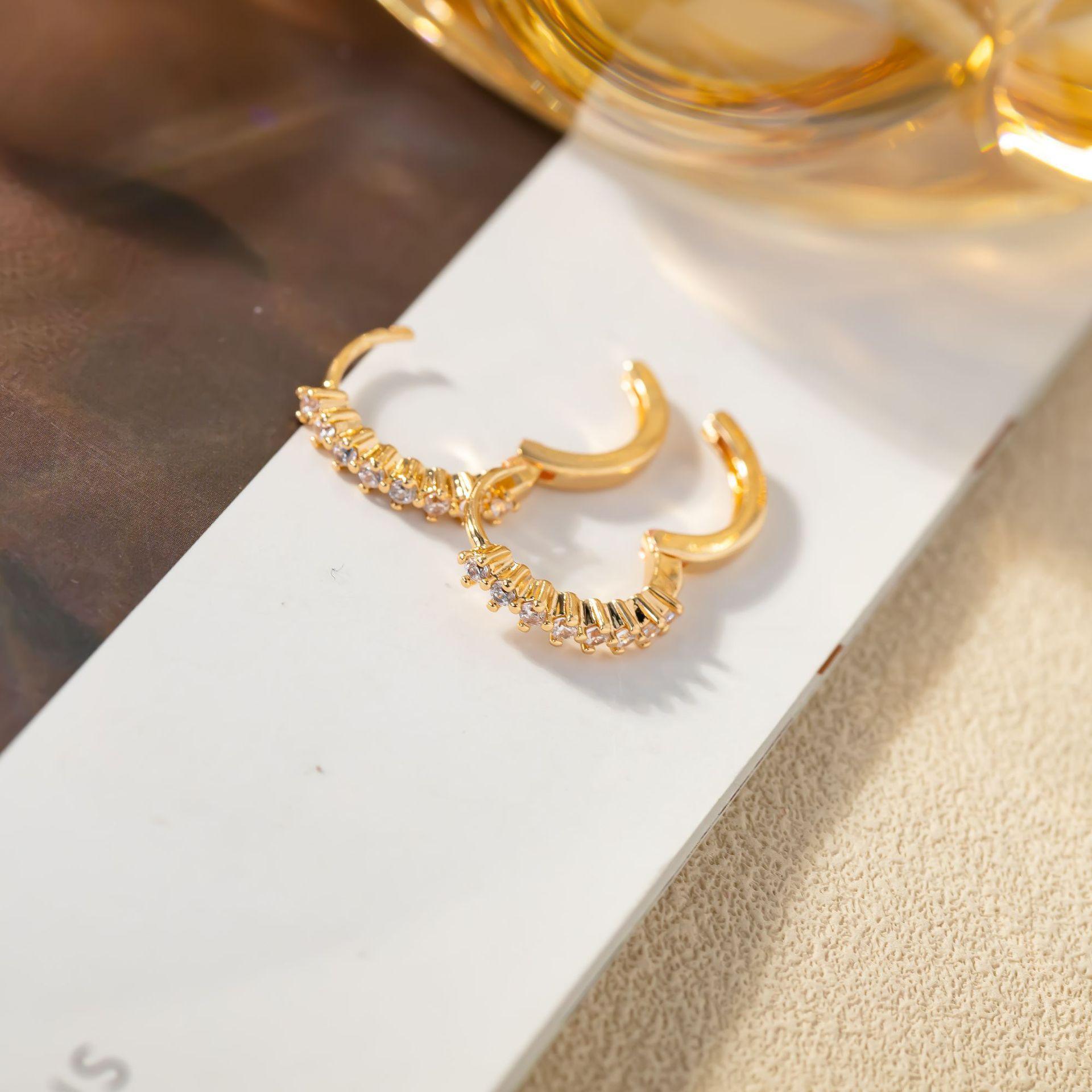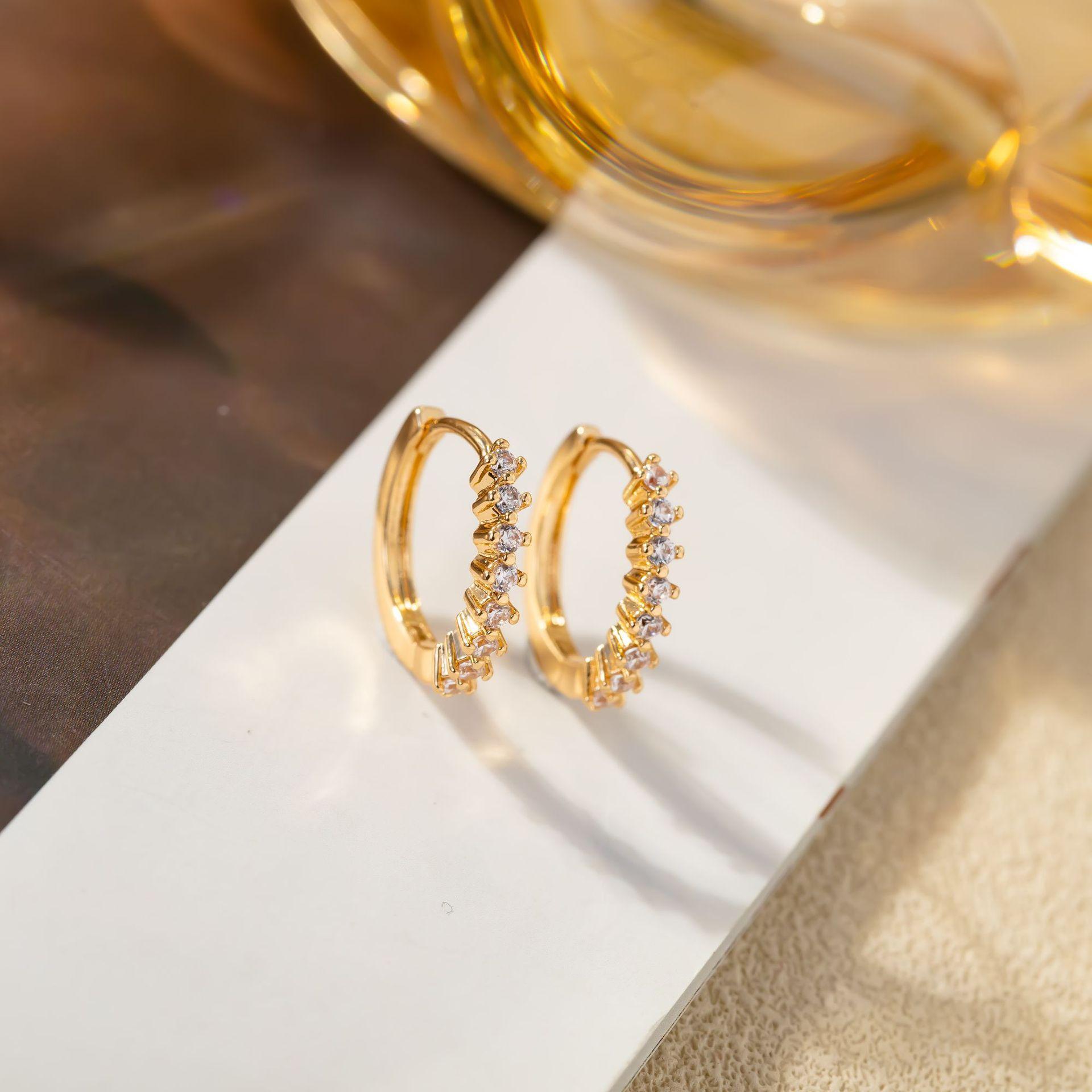 Aretes de aro de una sola fila de diamantes con forma de flor chapados en oro especial transfronterizo, aretes populares de moda simples que combinan con todo, aretes estilo ins, estilo coreano