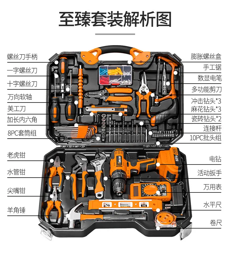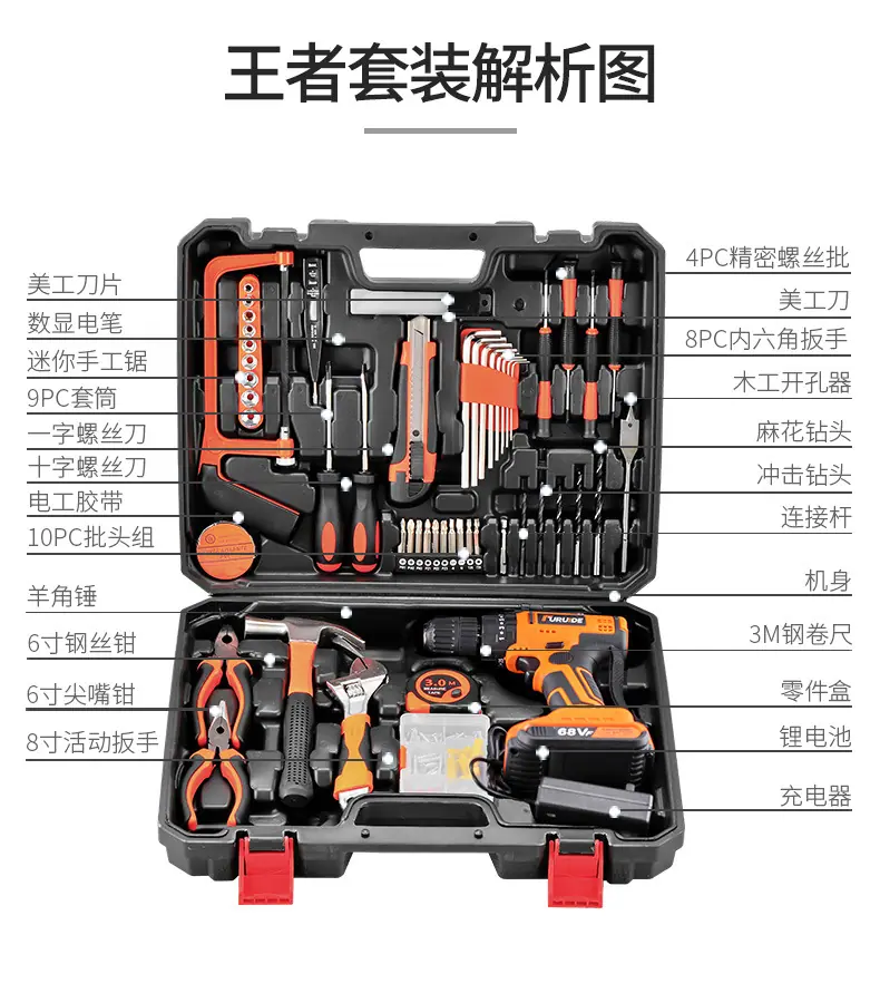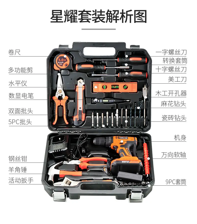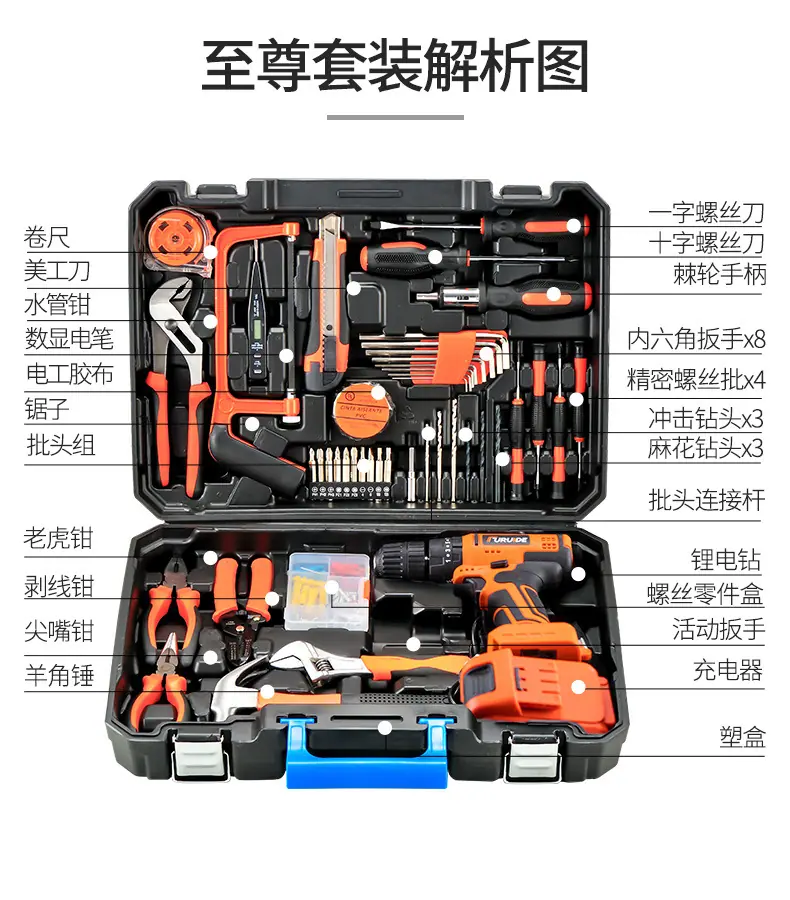 Caja de herramientas juego doméstico taladro eléctrico ferretería eléctrica electricista carpintería especial mantenimiento multi-función colección de herramientas combinadas
