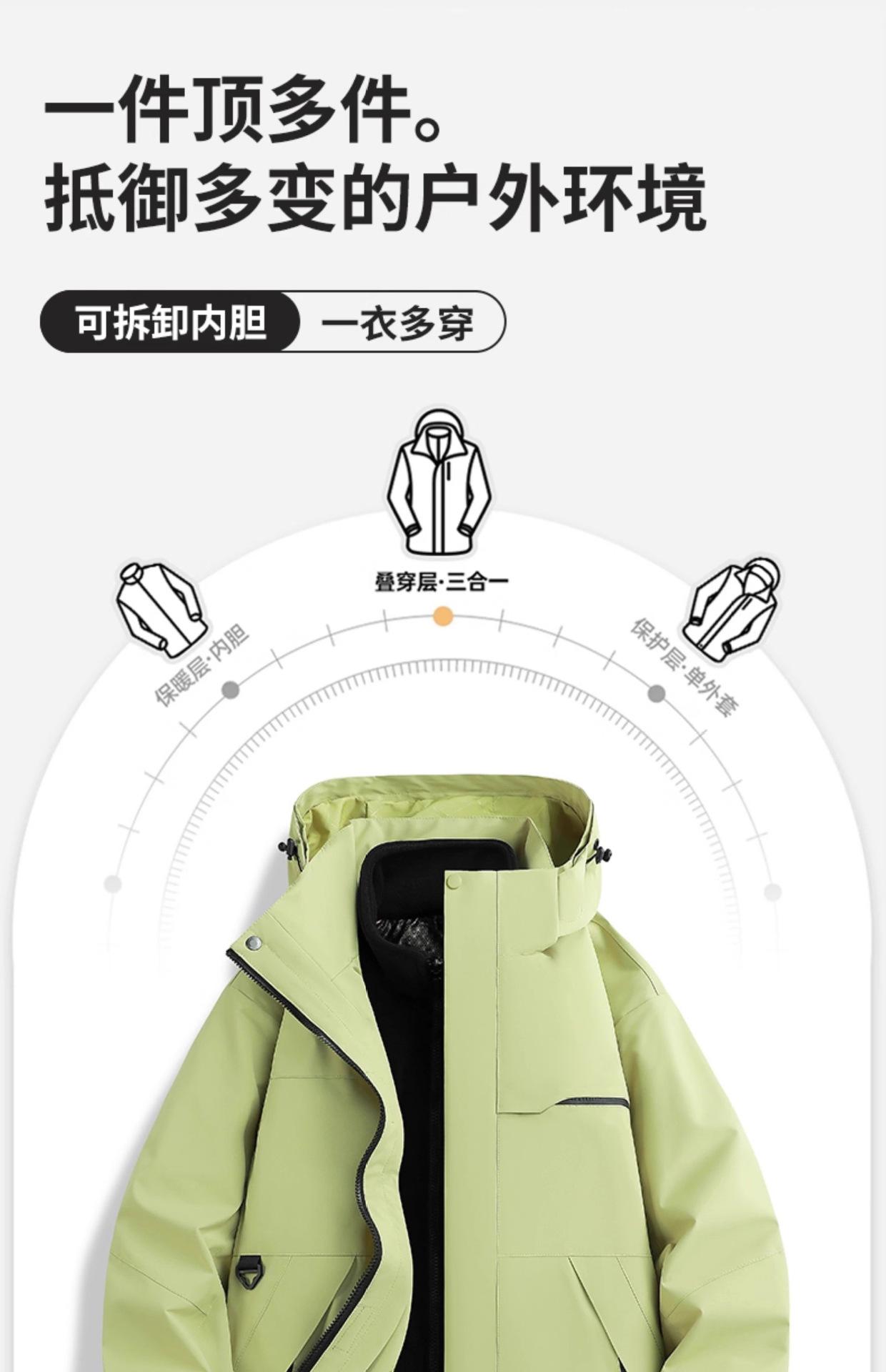 Chaqueta Nasa Fashion Color Puro 2025 Nueva Primavera y Otoño Tres En Uno para Exterior Cortavientos e Impermeable Montañismo Senderismo