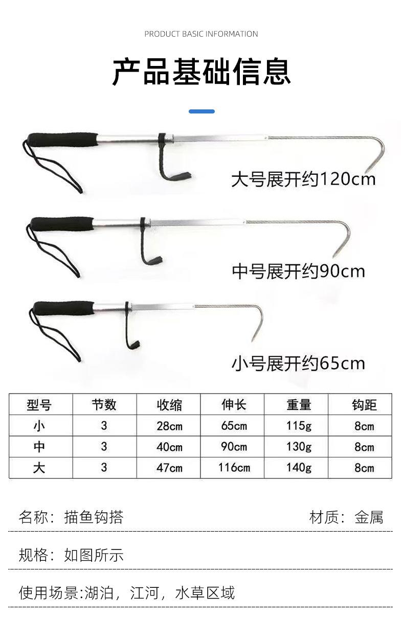 Small telescopic hook (unfold about 65cm), Medium telescopic hook (unfold about 90cm), Large telescopic hook (unfold about 120cm)