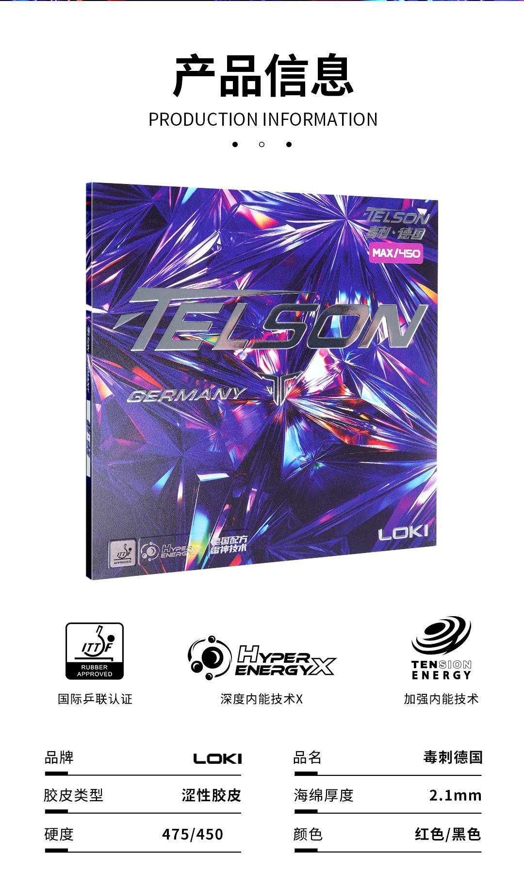 LOKI Goma para Raqueta de Tenis de Mesa Thor Goma Profesional de Entrenamiento Revés Ataque Rápido Stinger Goma Alemana Rojo Negro