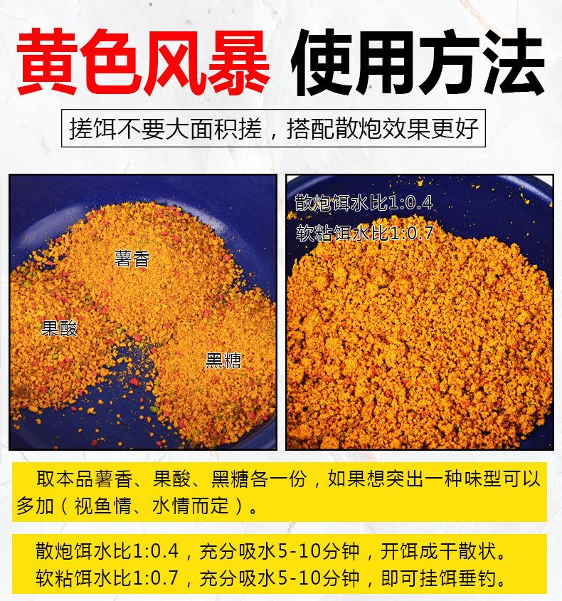 Tianchi Tormenta Amarilla Hoyo Negro Explosión Loca Receta Carpa Cebo para Peces Pesca a Granel Cebo Pellets Tricolor Dropshipping Transfronterizo