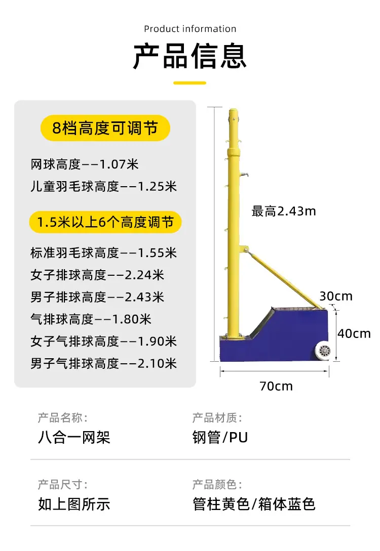 Soporte de Voleibol Móvil Multifuncional Ocho en Uno Poste Profesional de Voleibol Tenis Soporte de Voleibol Aéreo Poste Portátil para Red de Bádminton