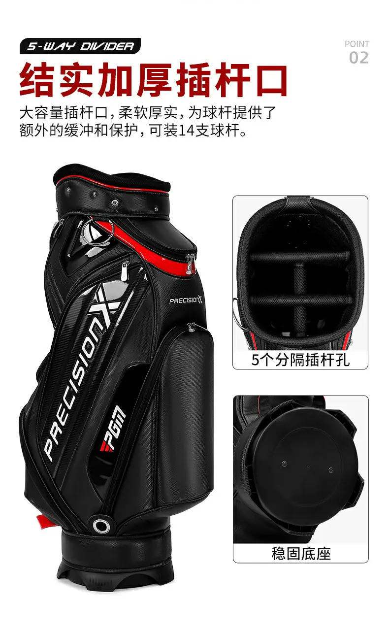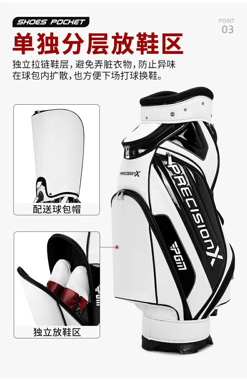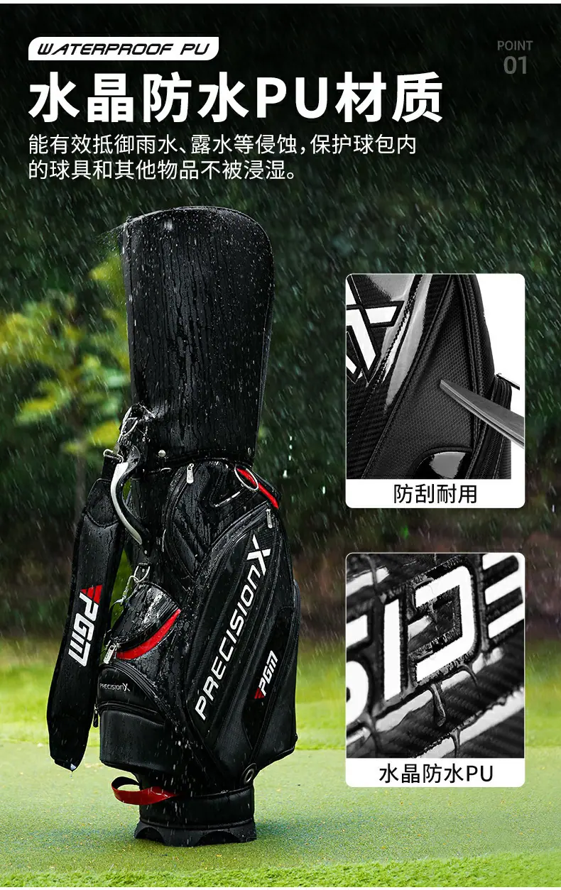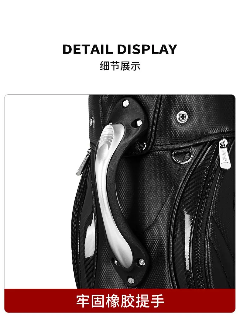 | 2 | Material de PU ecológico de alta calidad y un fino trabajo de torneado para crear una buena bolsa de golf para usted. | |||