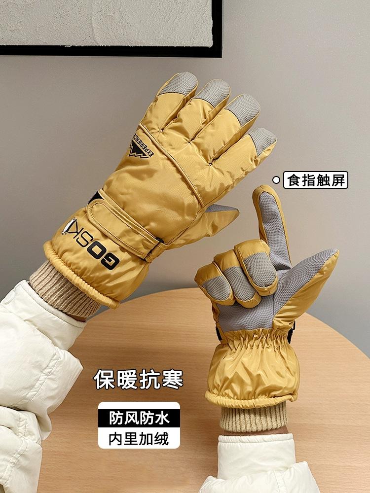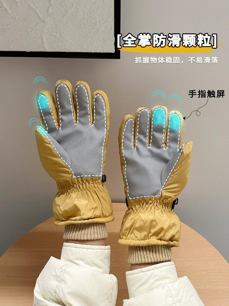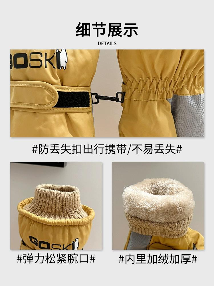 Guantes cálidos de esquí a prueba de frío para montar al aire libre en bicicleta eléctrica en invierno, más terciopelo, impermeables, con pantalla táctil, muñequeras antipérdida para hombres y mujeres