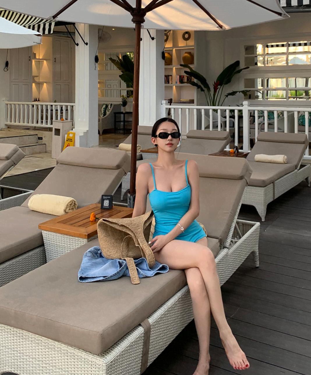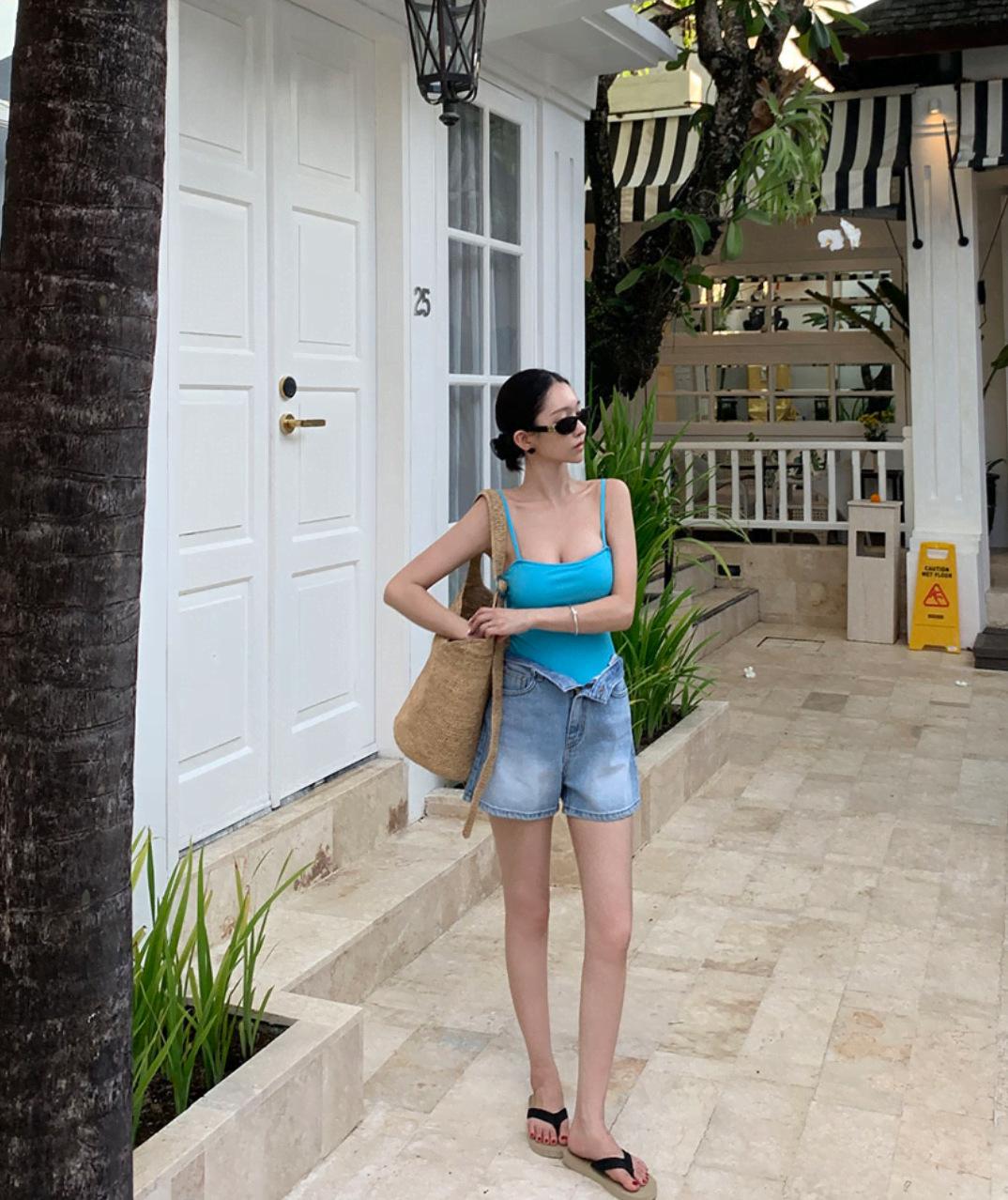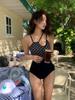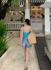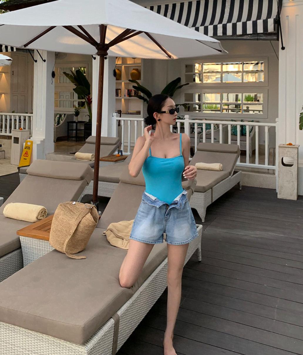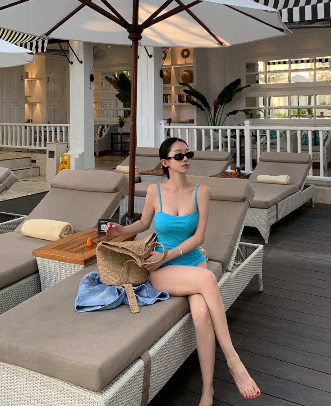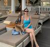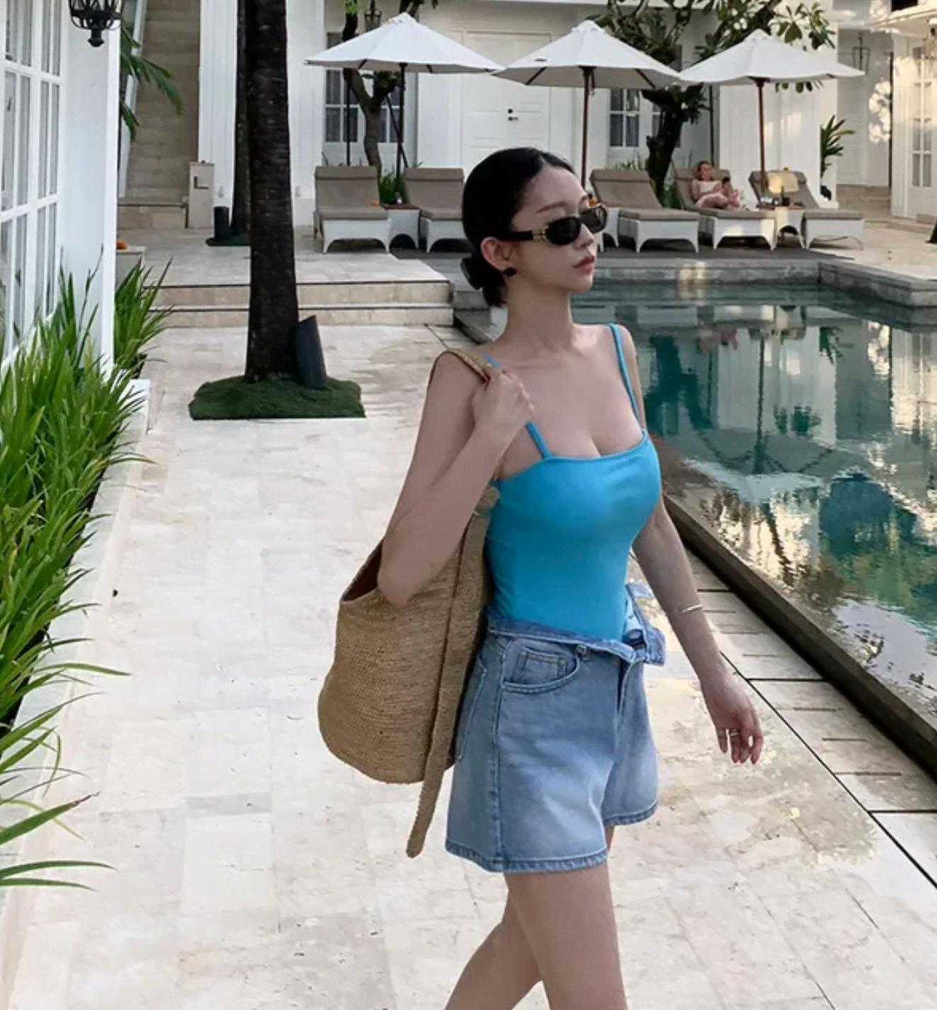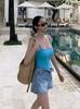 2025 Estilo coreano ins retro minimalista color sólido doble hombro atar ajustado bikini de una pieza traje de baño para mujer
