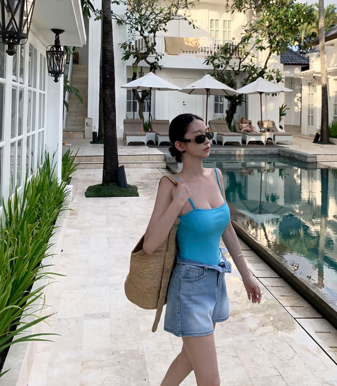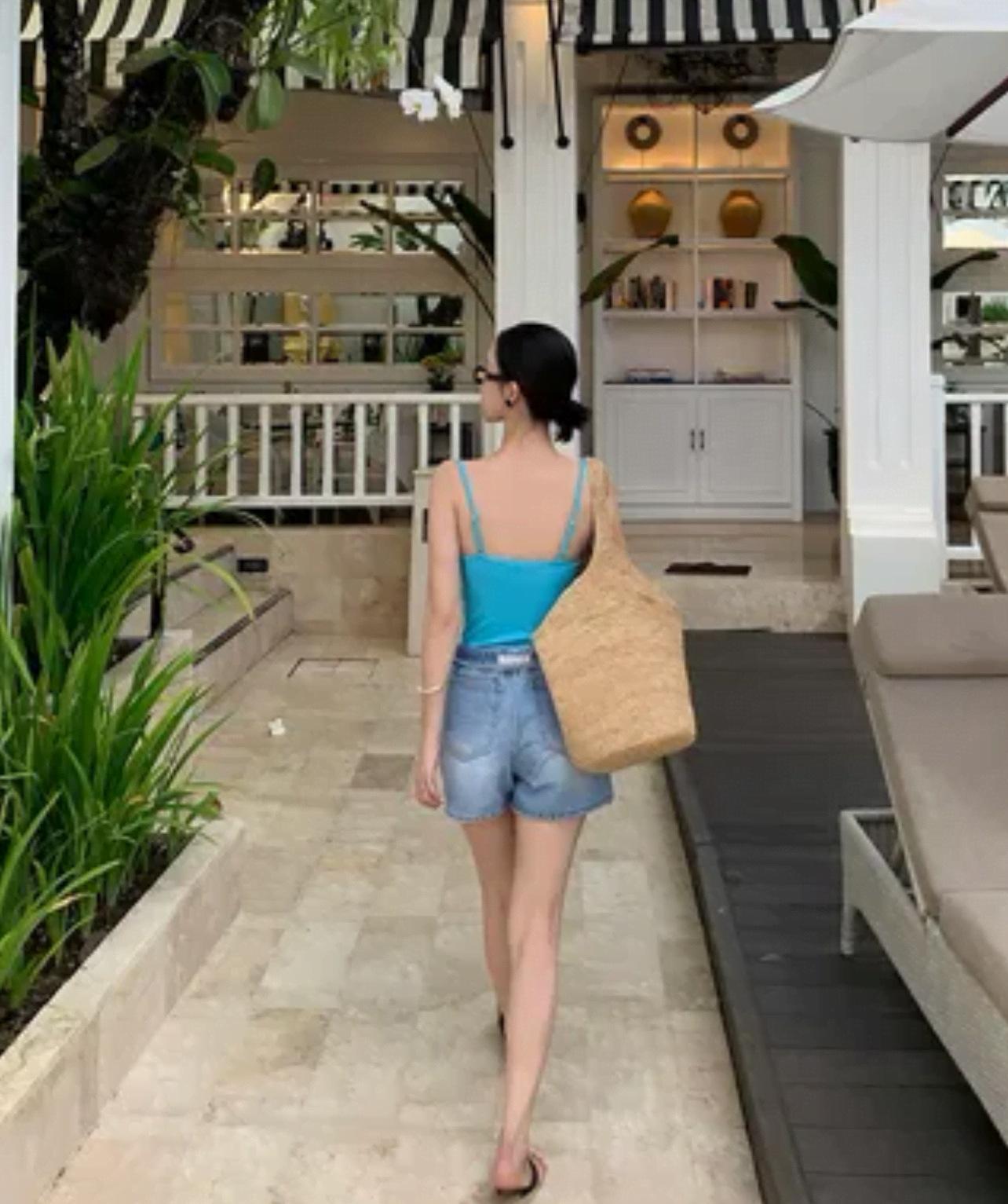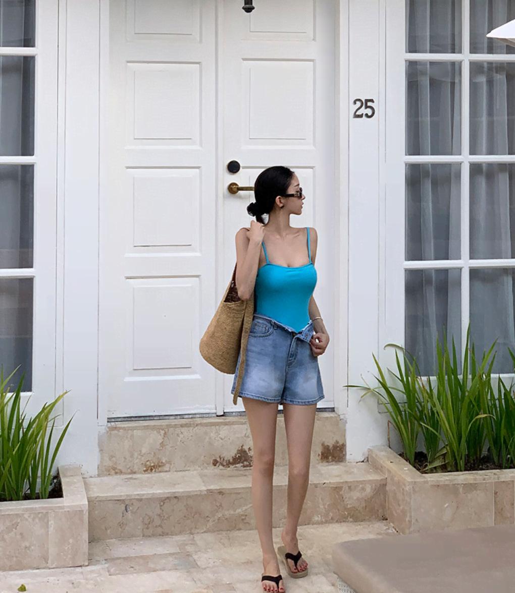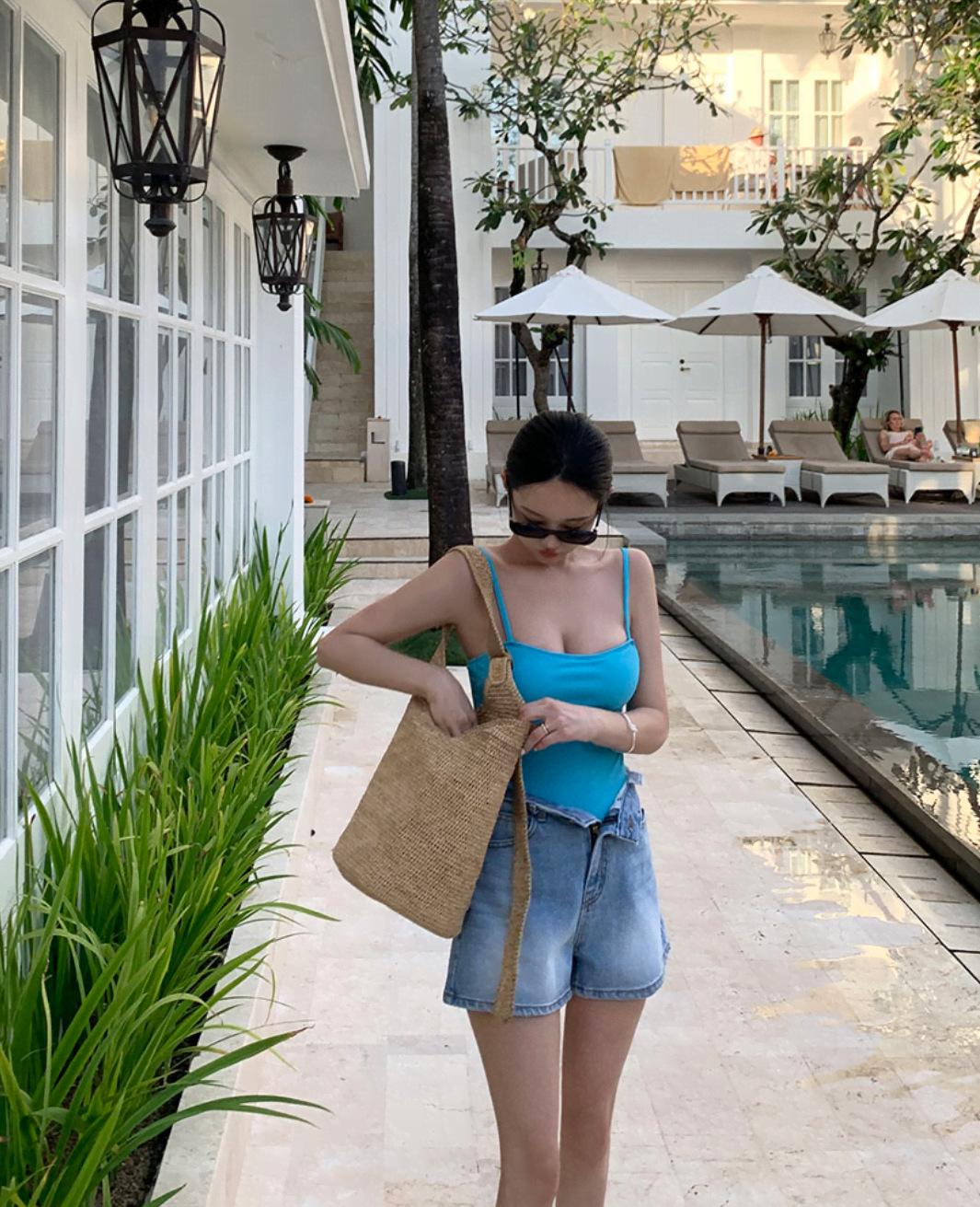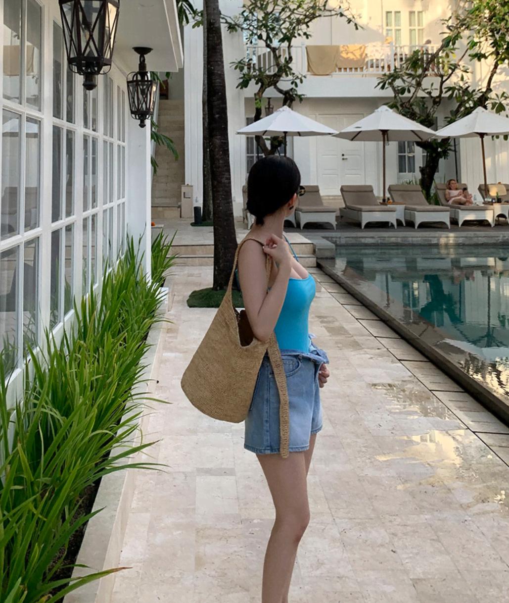 2025 Estilo coreano ins retro minimalista color sólido doble hombro atar ajustado bikini de una pieza traje de baño para mujer