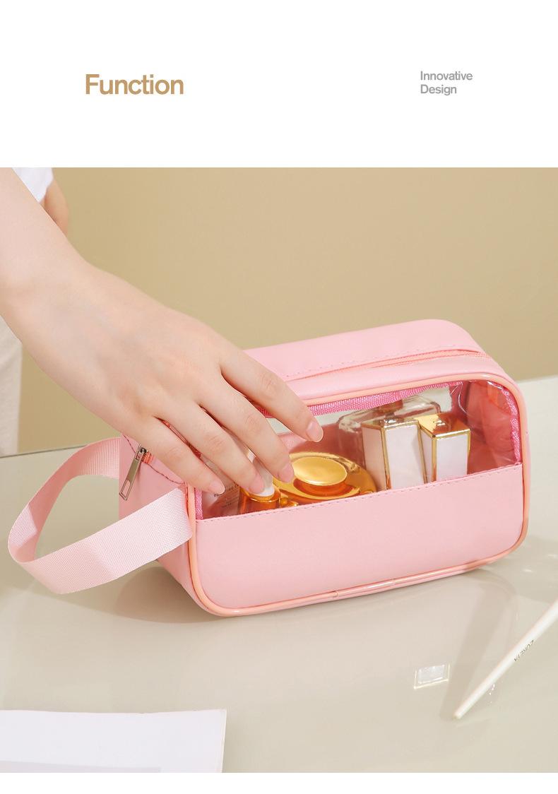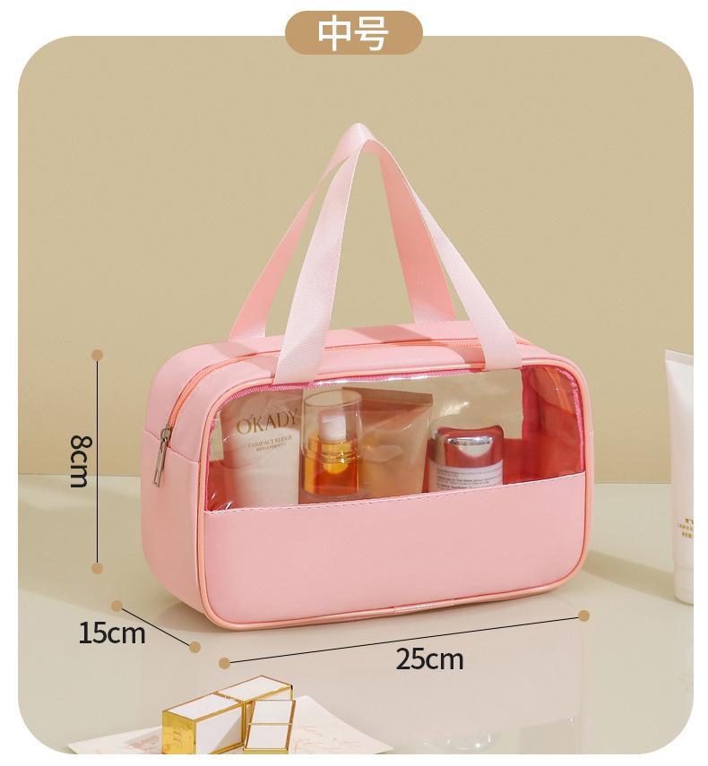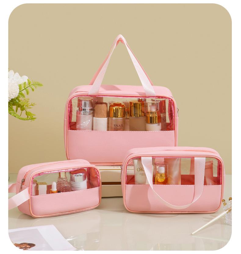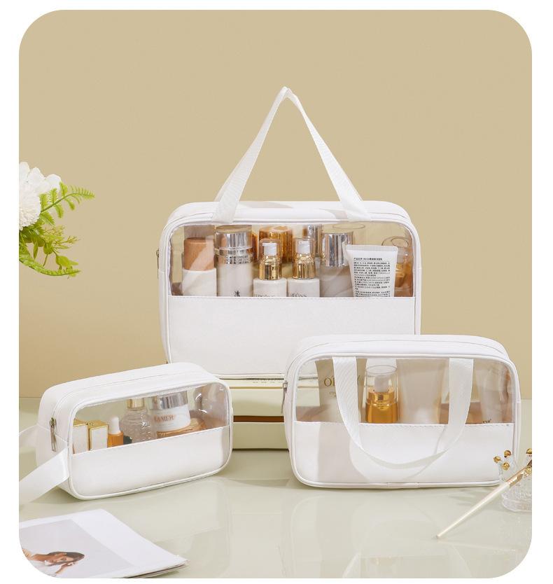 Bolsa de maquillaje transparente de PVC engrosado empalmado, bolsa de aseo de viaje, bolsa de almacenamiento multifuncional para cosméticos de baño, almacenamiento