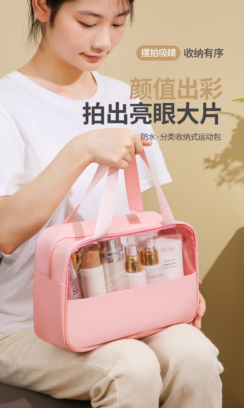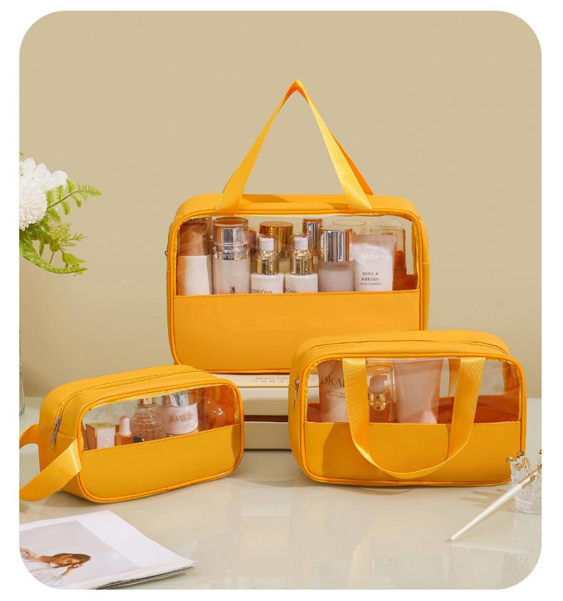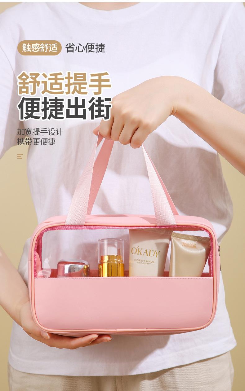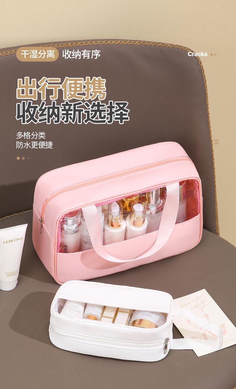 Bolsa de maquillaje transparente de PVC engrosado empalmado, bolsa de aseo de viaje, bolsa de almacenamiento multifuncional para cosméticos de baño, almacenamiento