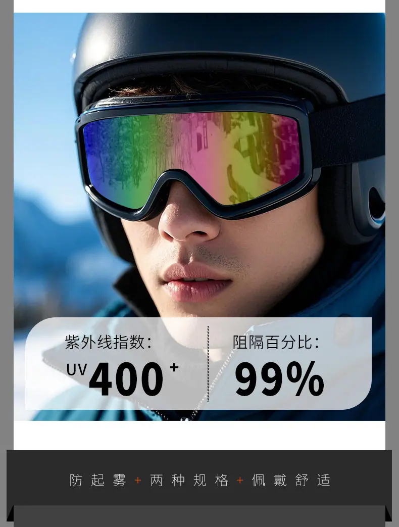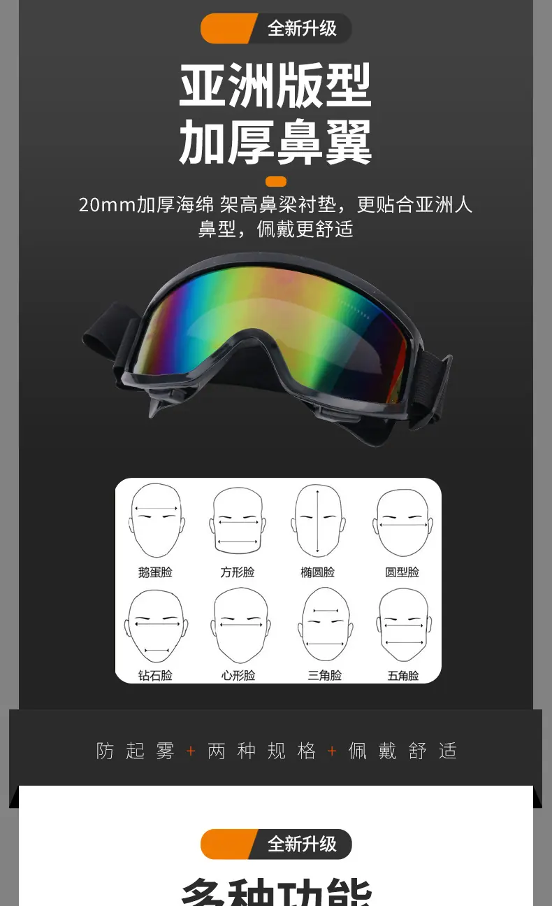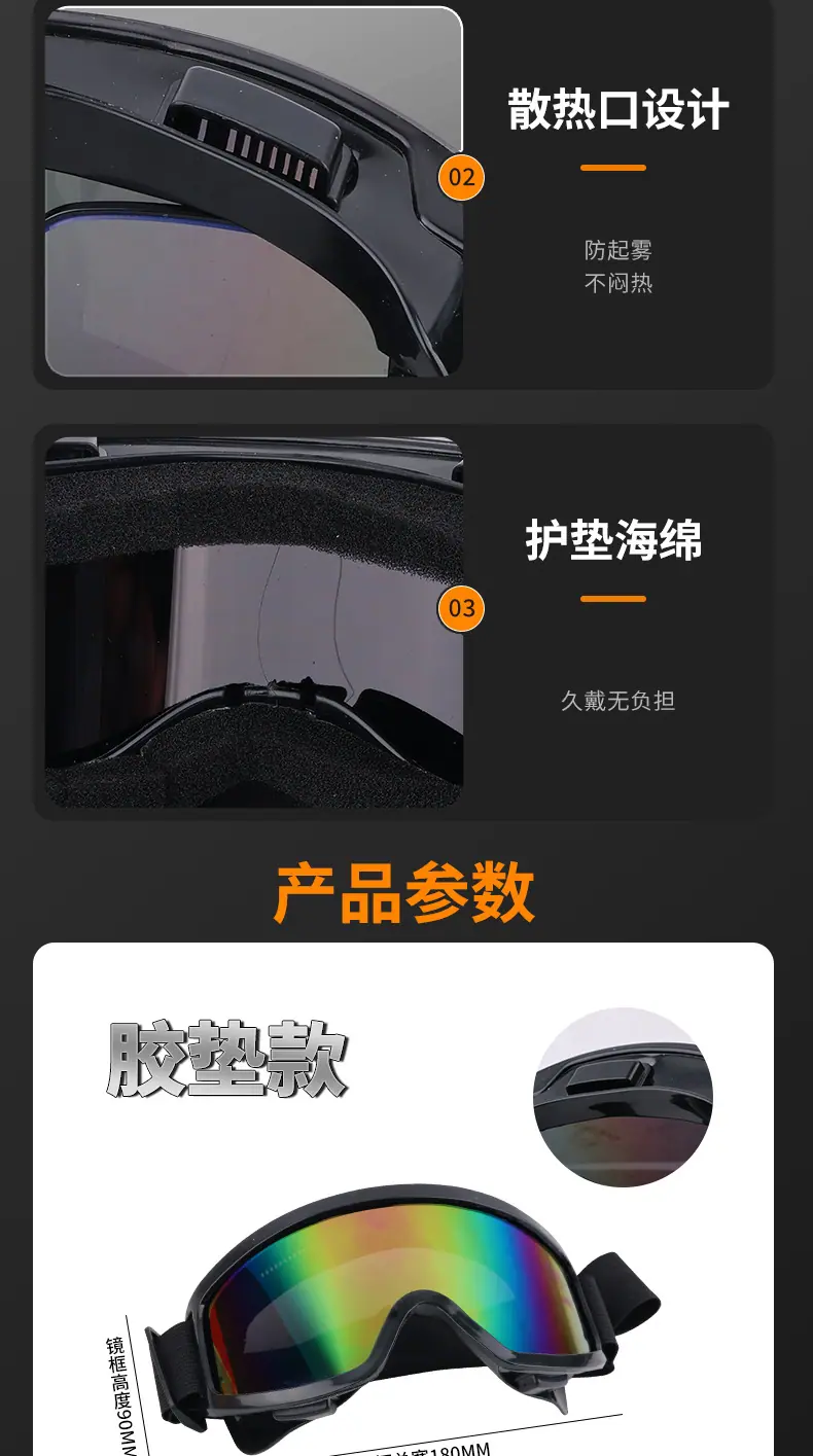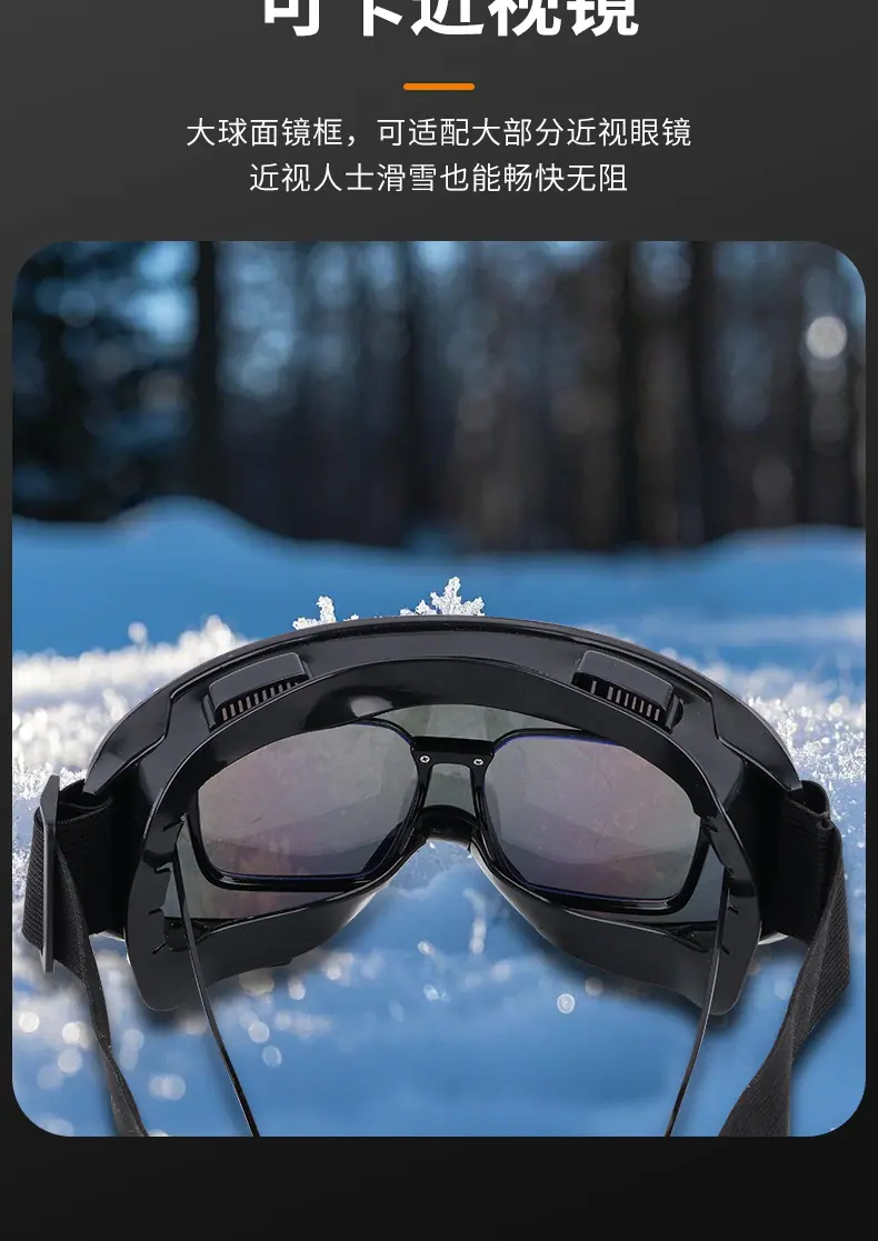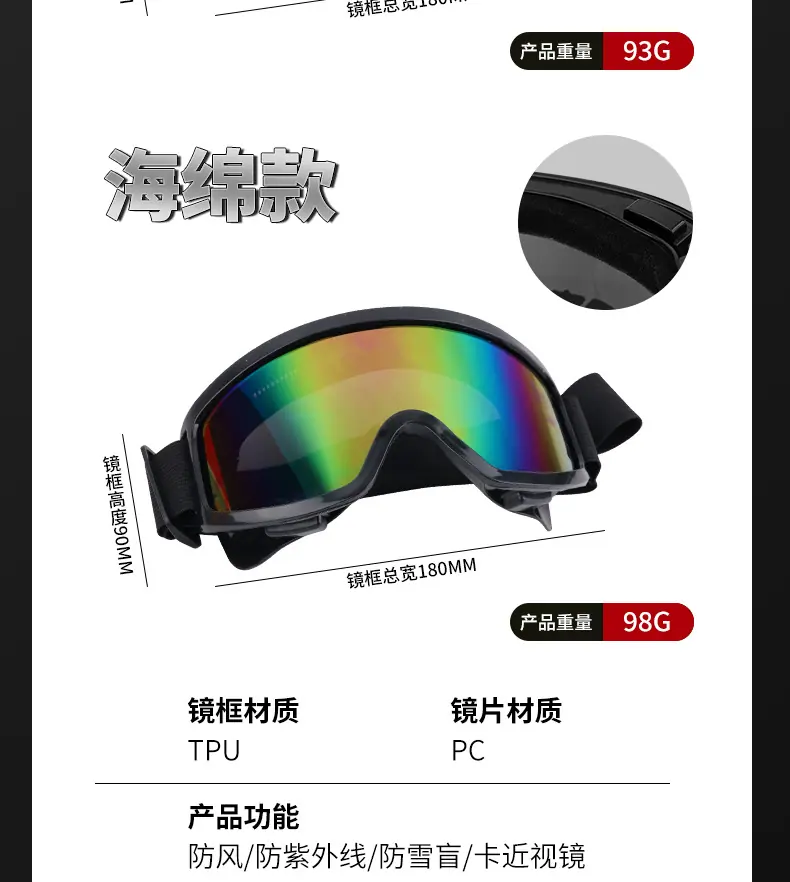 Ski goggles with black color gel pad, Ski goggles black color sponge model