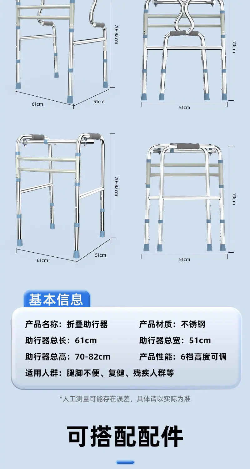 Andador Personalizado Andador de Acero Inoxidable para Ancianos con Inconvenientes en Piernas y Pies Viaje Pasamanos de Apoyo Pasamanos Andador