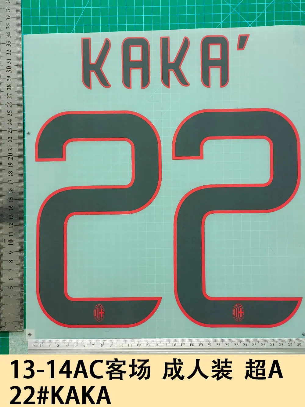 13-14AC Visitante Adulto Paquete A 22#KAKA Número de Jersey Estampado de Letras Número Transferencia de Calor Balón Mapa
