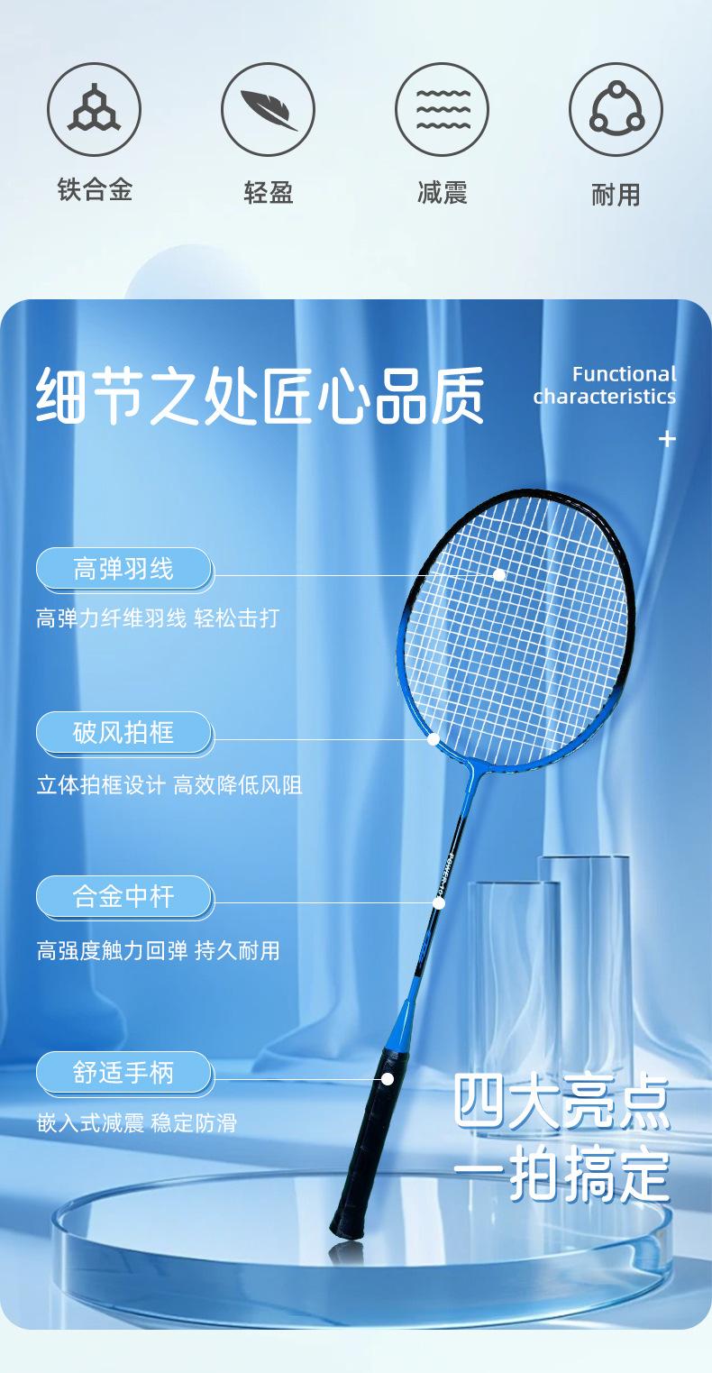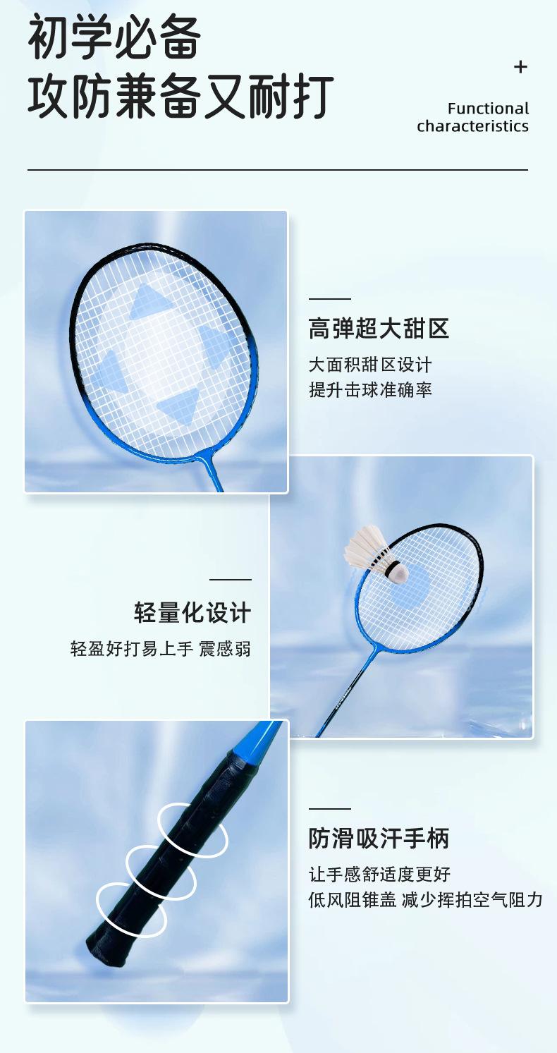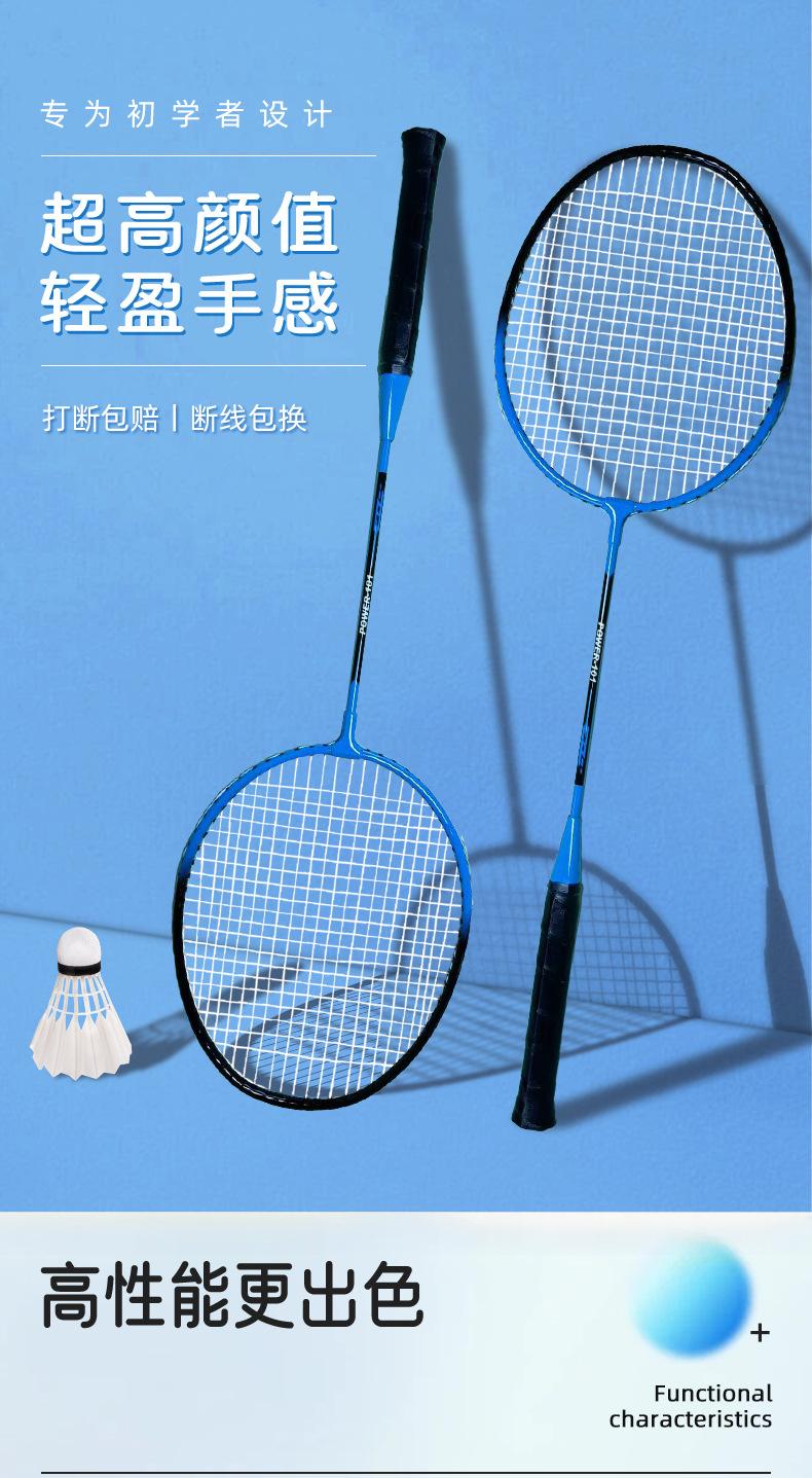 Blue Double Racket + Bag + Durable Shuttlecock + 2 Grip Tapes