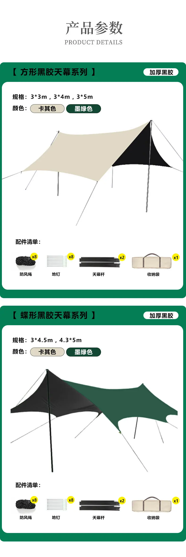 Joven Maestro Recubierto de Plata Protección Solar Carpa Cenador para Exterior Espesado Pegamento Negro Forma de Mariposa Camping Sombrilla Picnic Toldo Fabricante