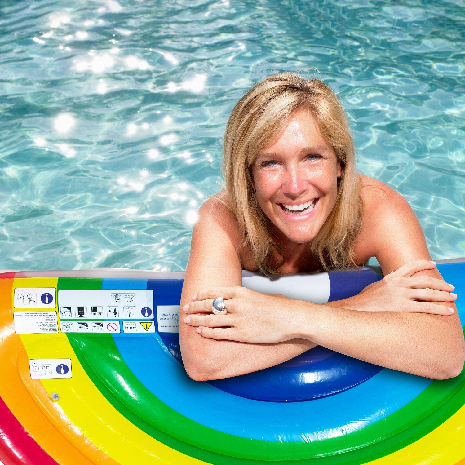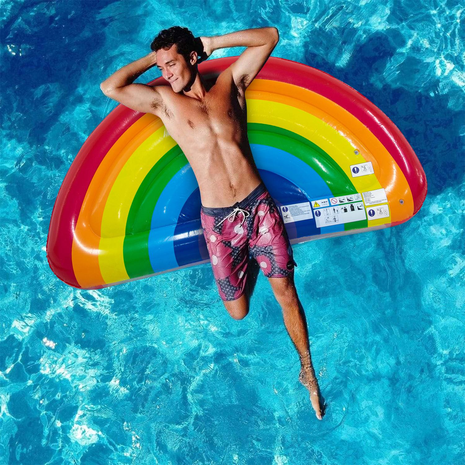 Flotador de agua inflable en stock, colchoneta flotante inflable para piscina, juguete flotador de arcoíris, anillo de natación inflable de unicornio
