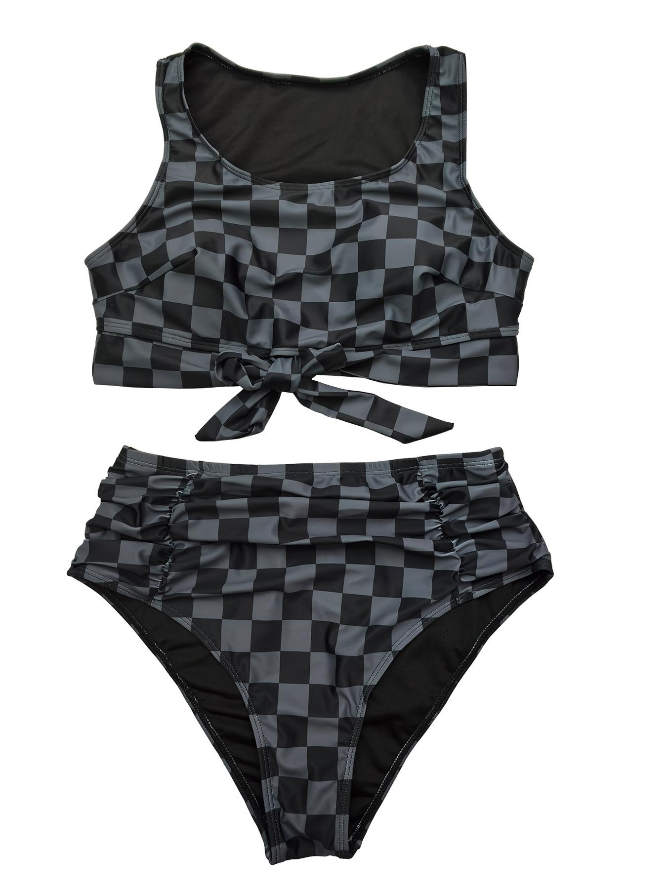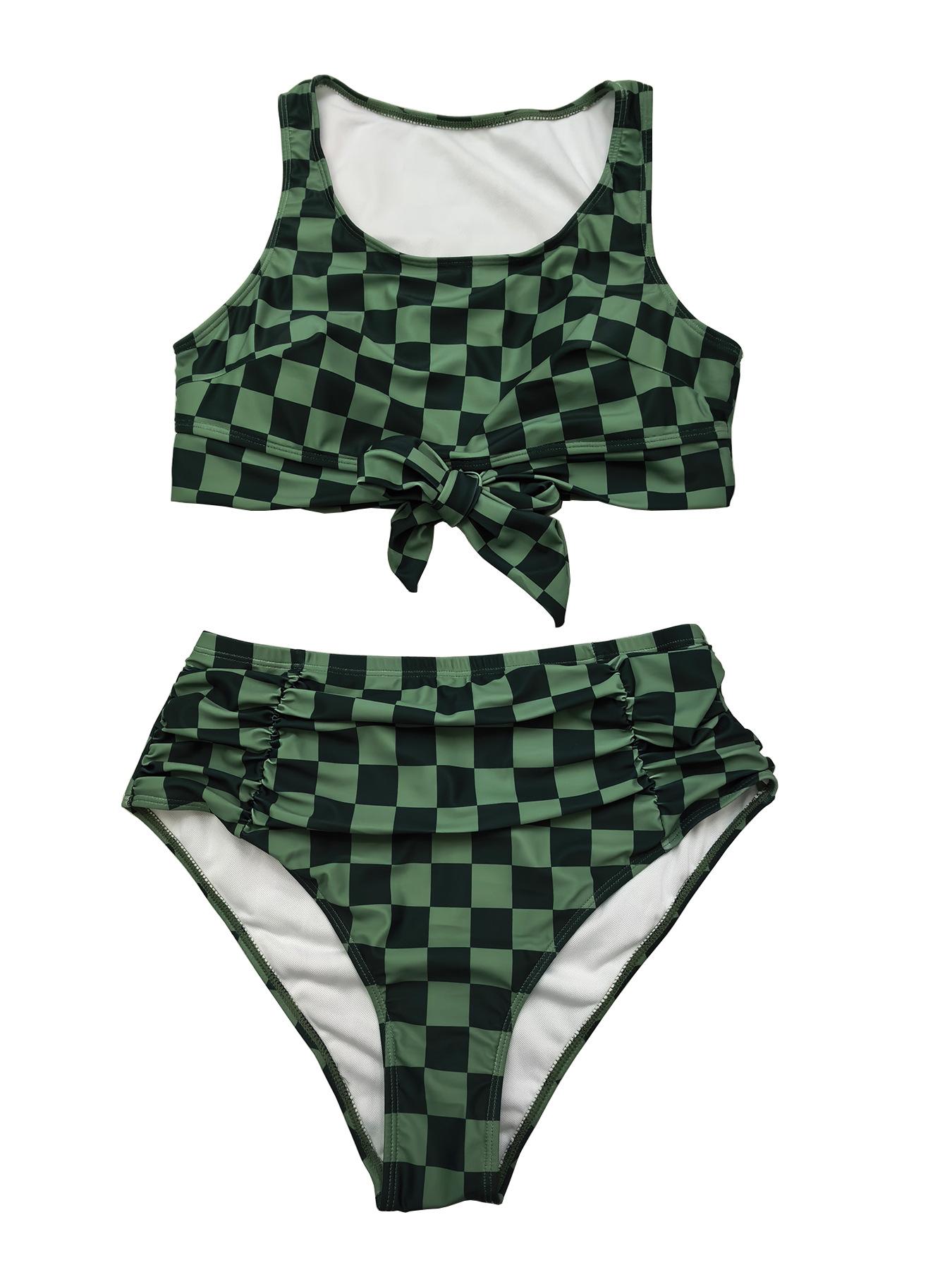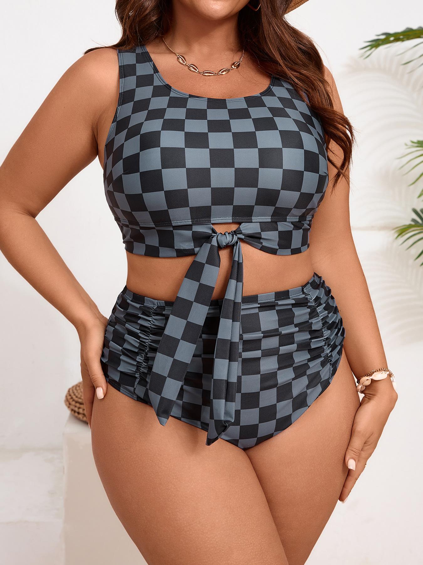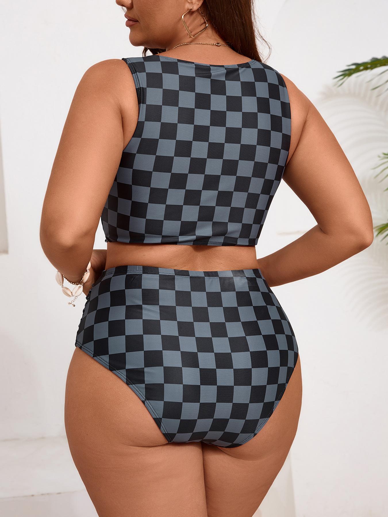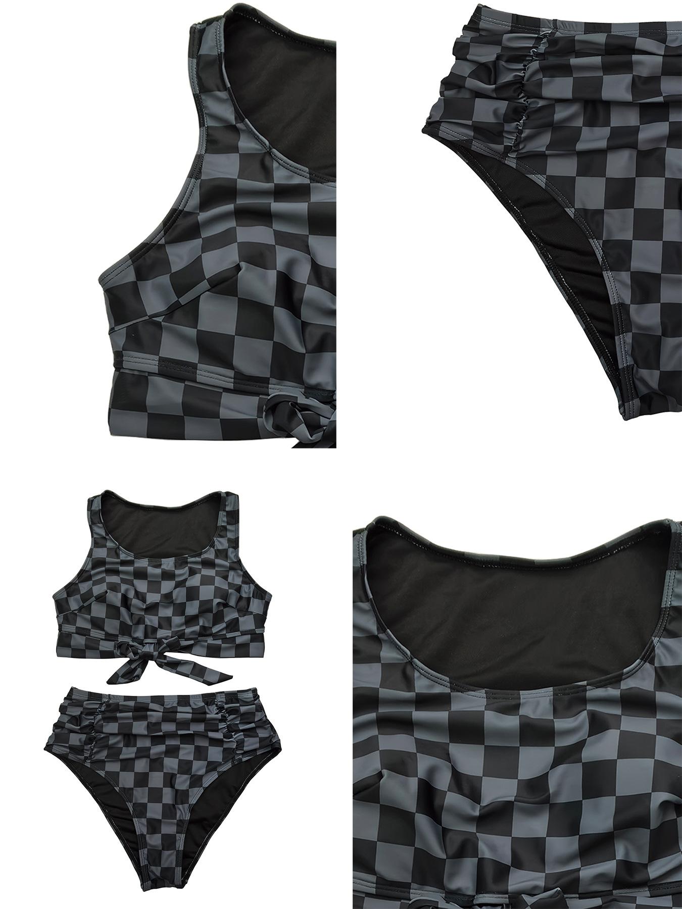Compra Traje de Baño Europeo y Americano Transfronterizo Nuevo Sexy Estampado a Cuadros Comercio Exterior Talla Grande Bikini Dividido para Mujer Cintura Alta Control de Abdomen Traje de Baño al por mayor en Joom.pro