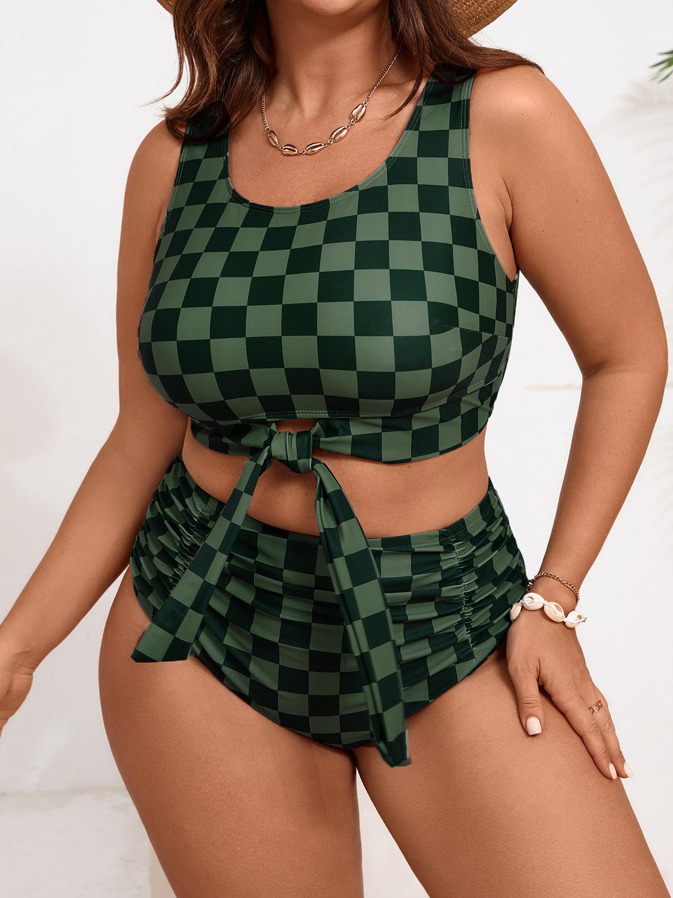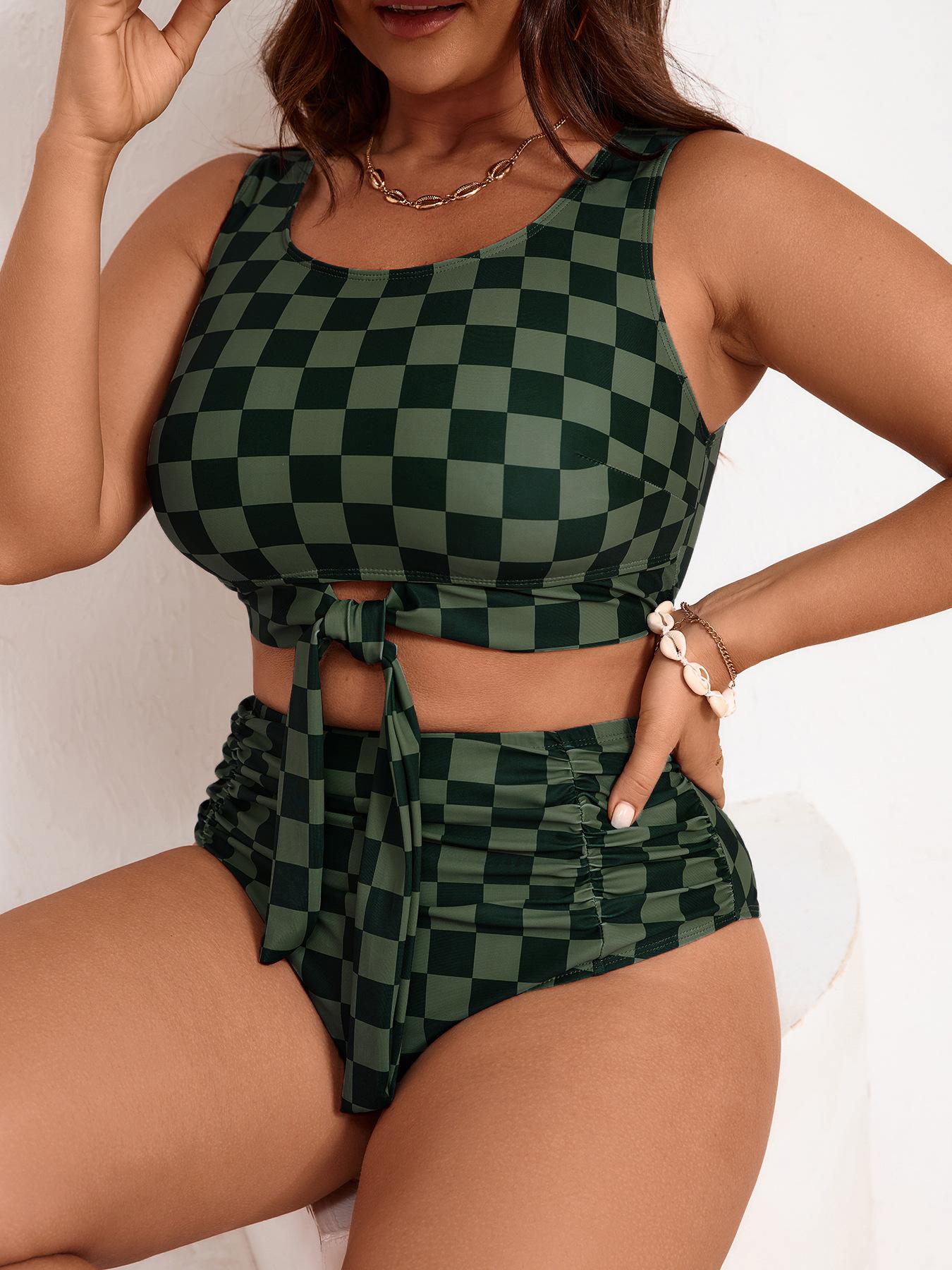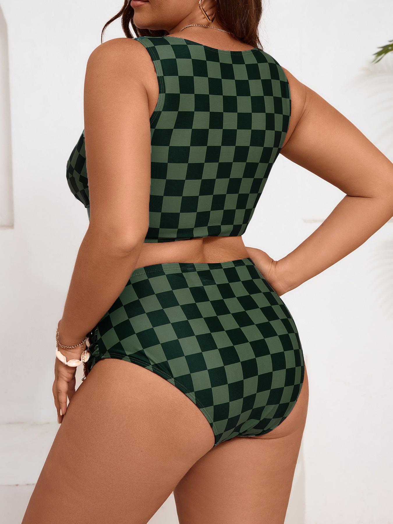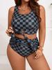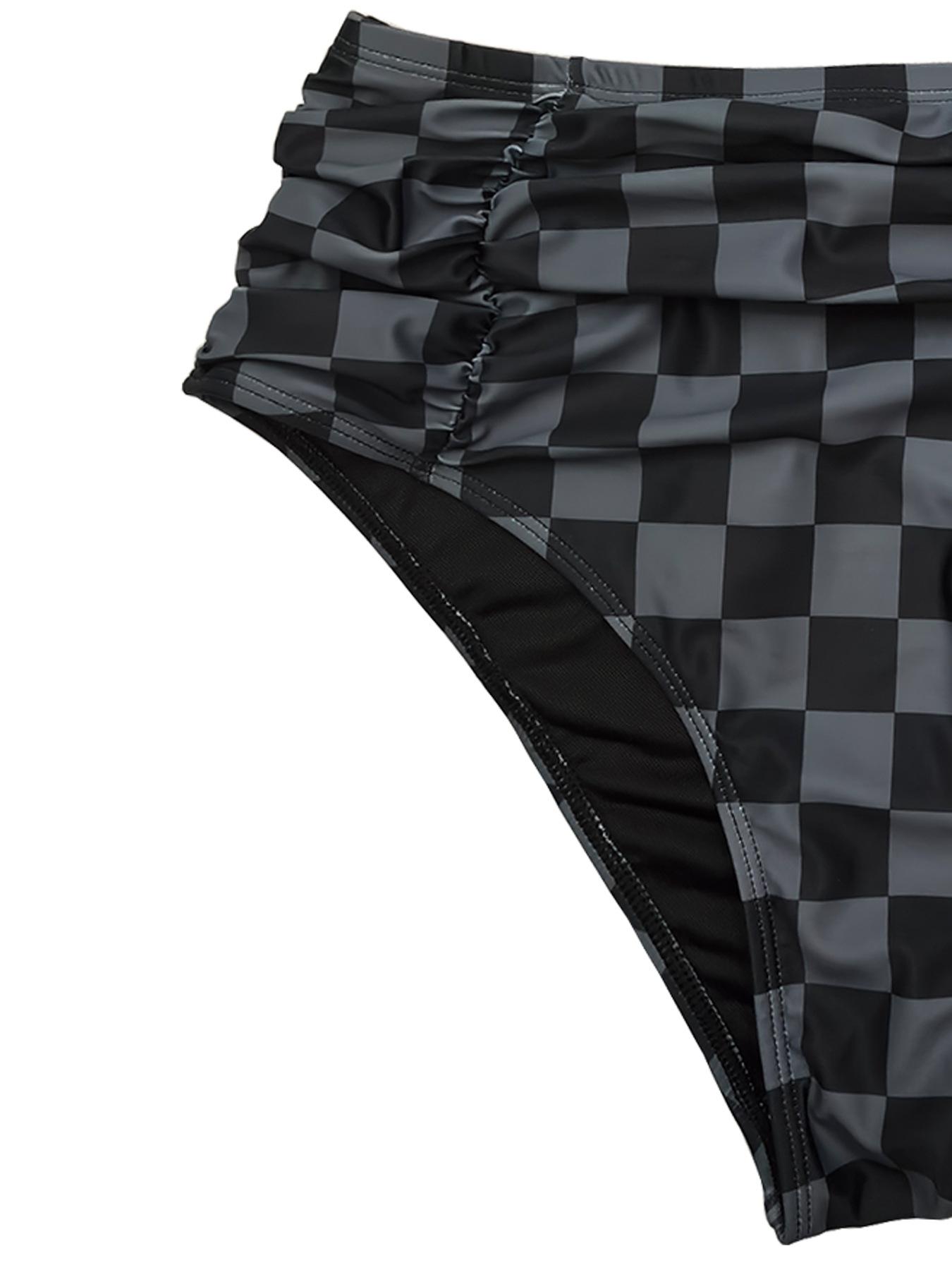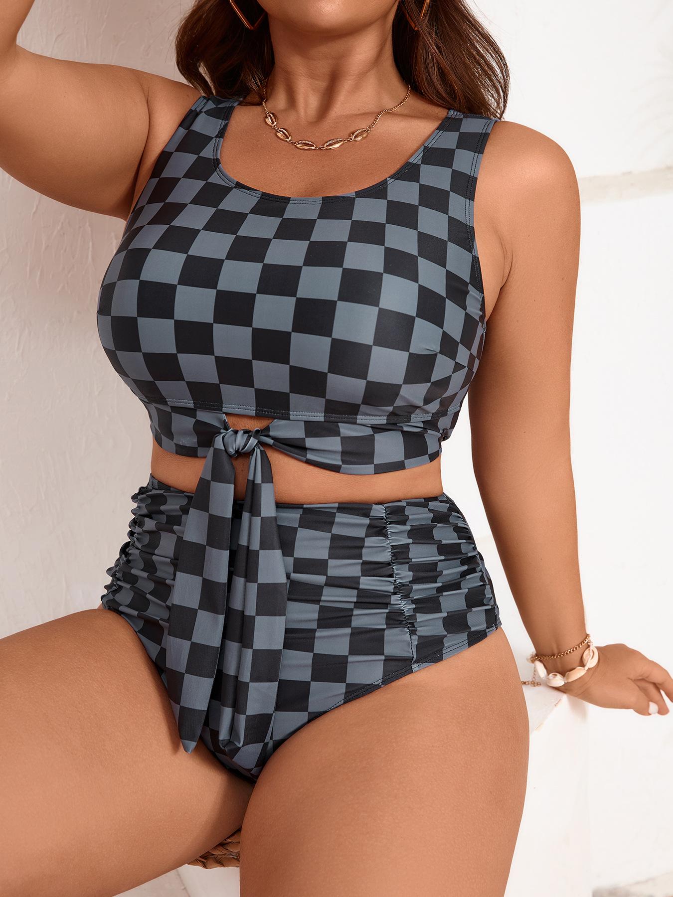 Compra Traje de Baño Europeo y Americano Transfronterizo Nuevo Sexy Estampado a Cuadros Comercio Exterior Talla Grande Bikini Dividido para Mujer Cintura Alta Control de Abdomen Traje de Baño al por mayor en Joom.pro