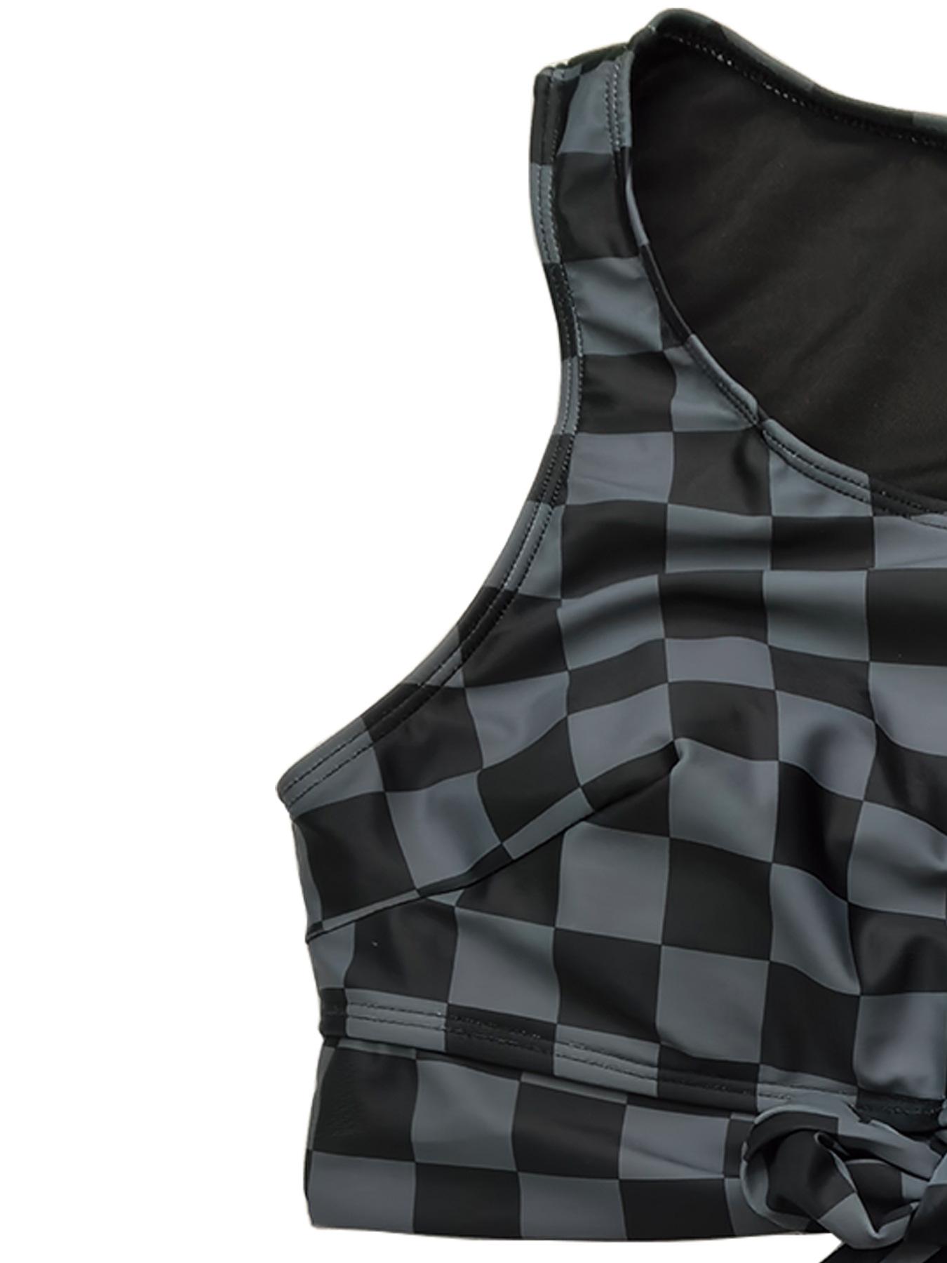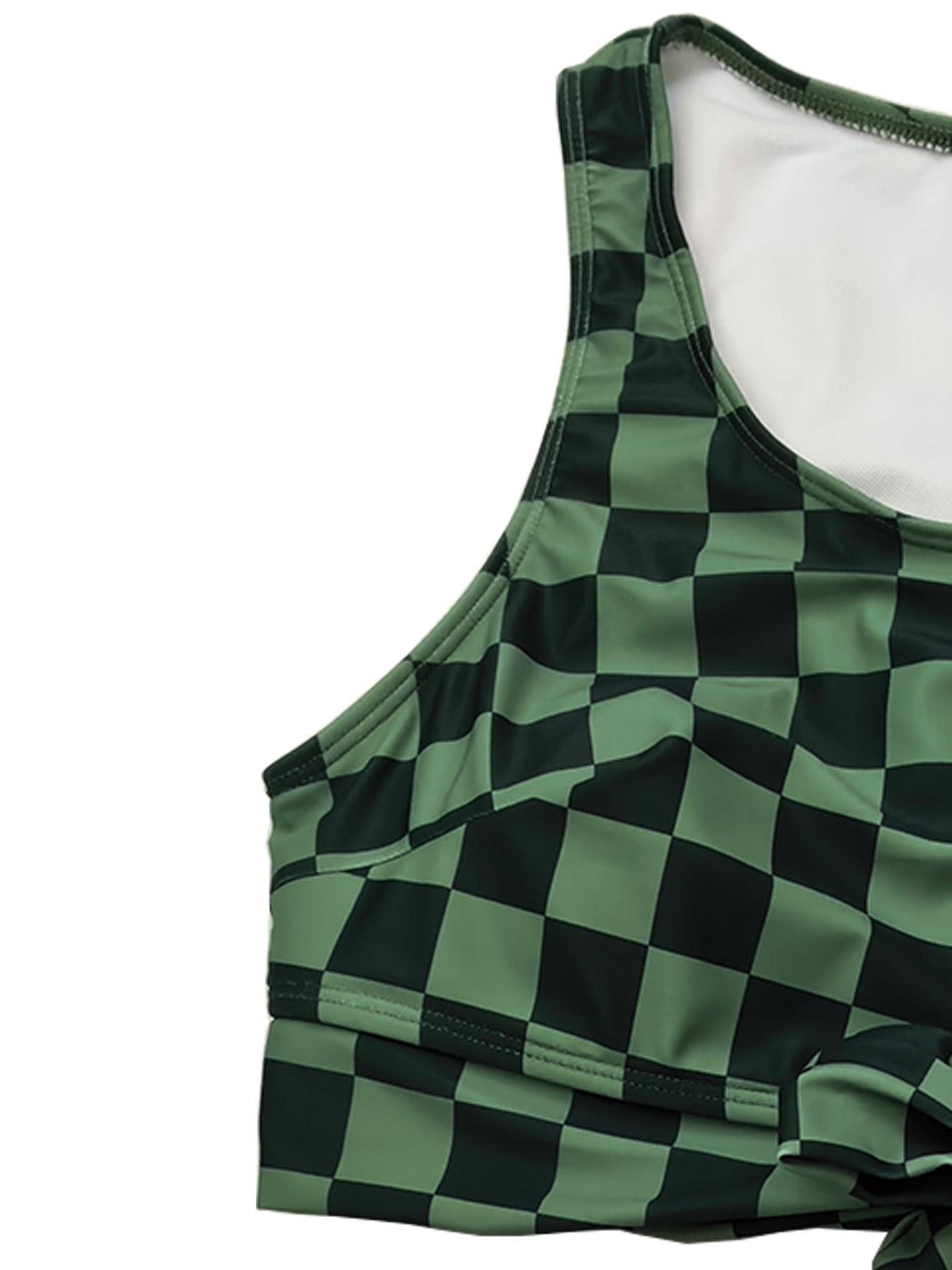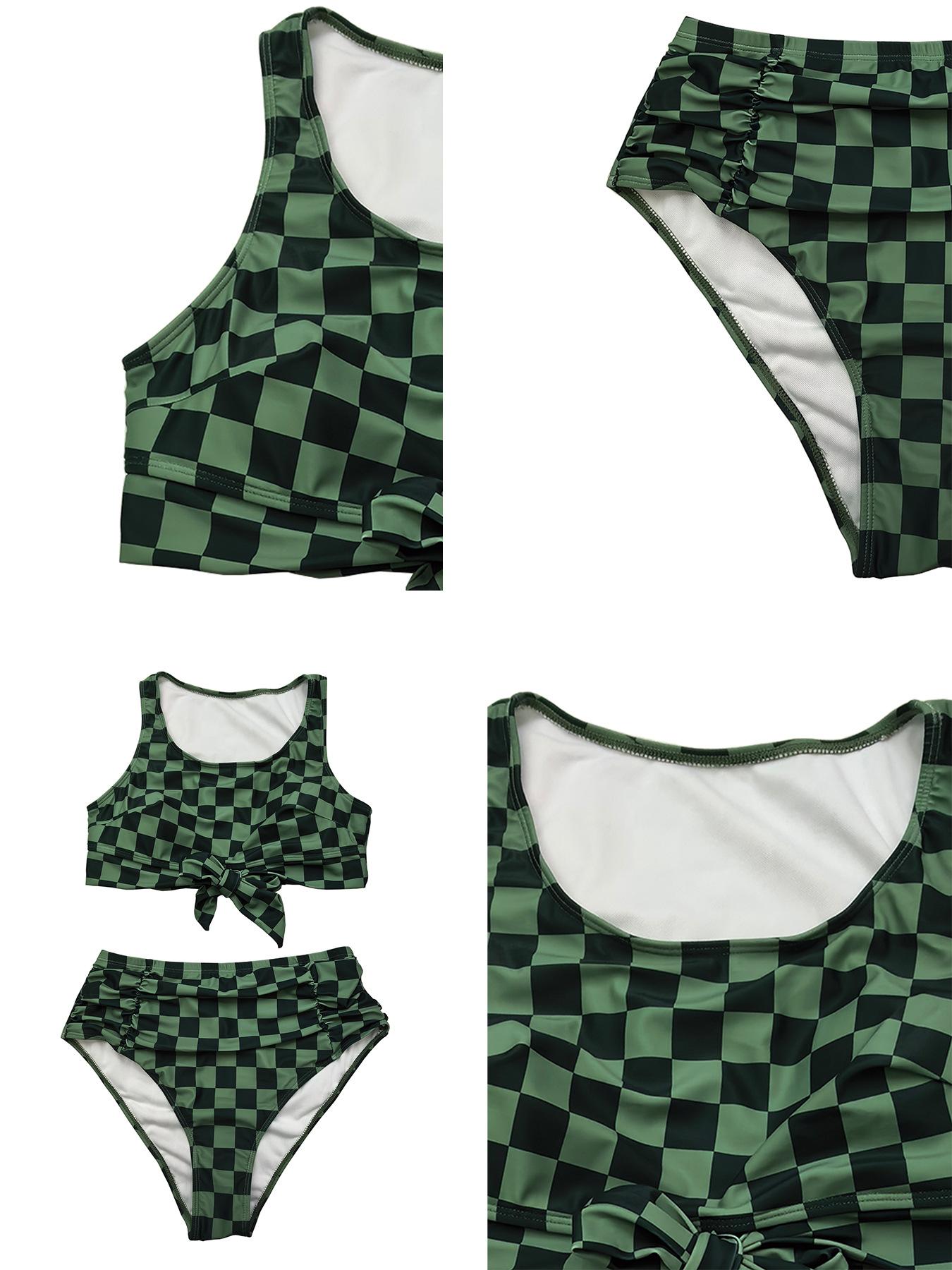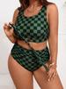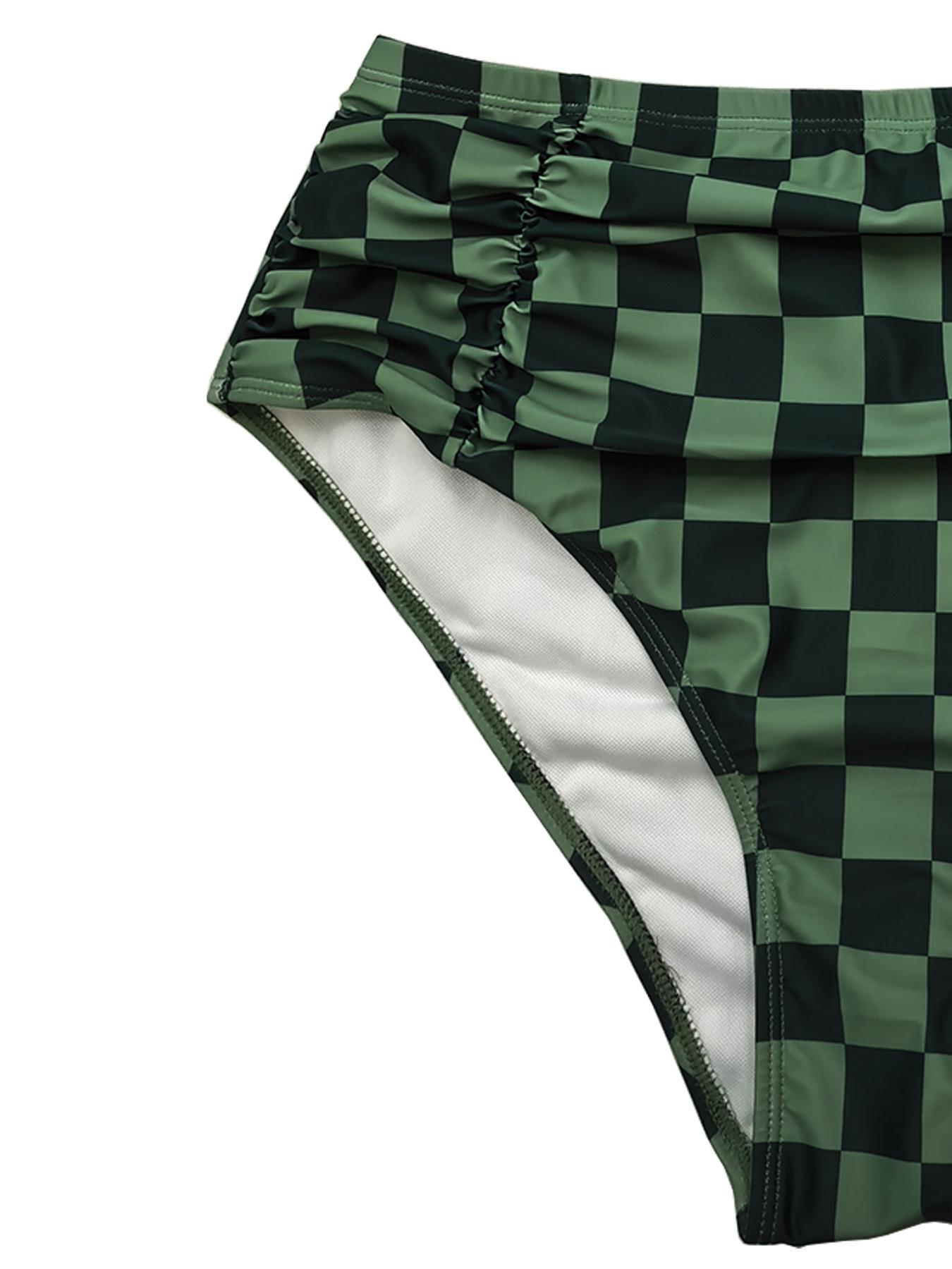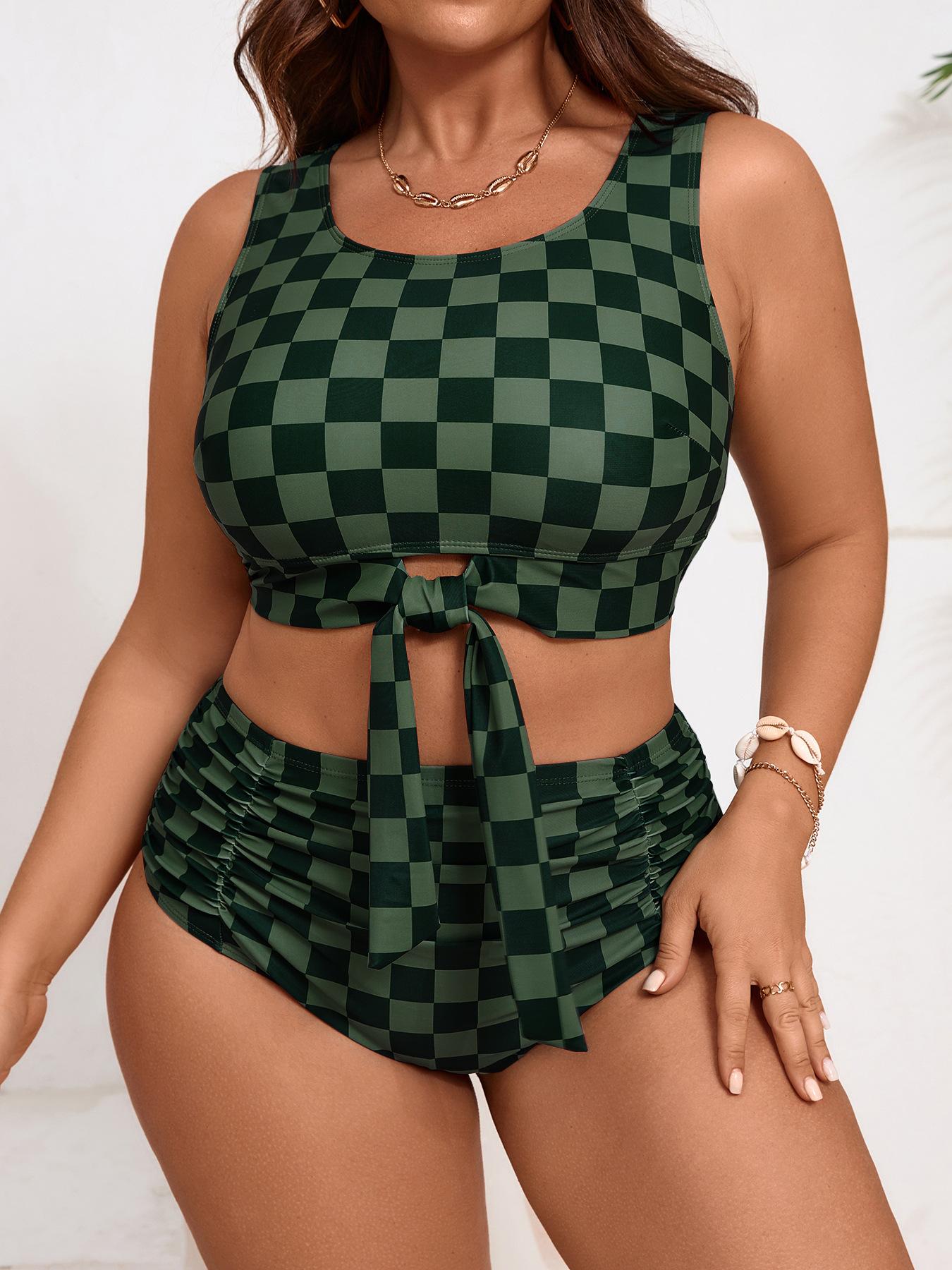 Compra Traje de Baño Europeo y Americano Transfronterizo Nuevo Sexy Estampado a Cuadros Comercio Exterior Talla Grande Bikini Dividido para Mujer Cintura Alta Control de Abdomen Traje de Baño al por mayor en Joom.pro
