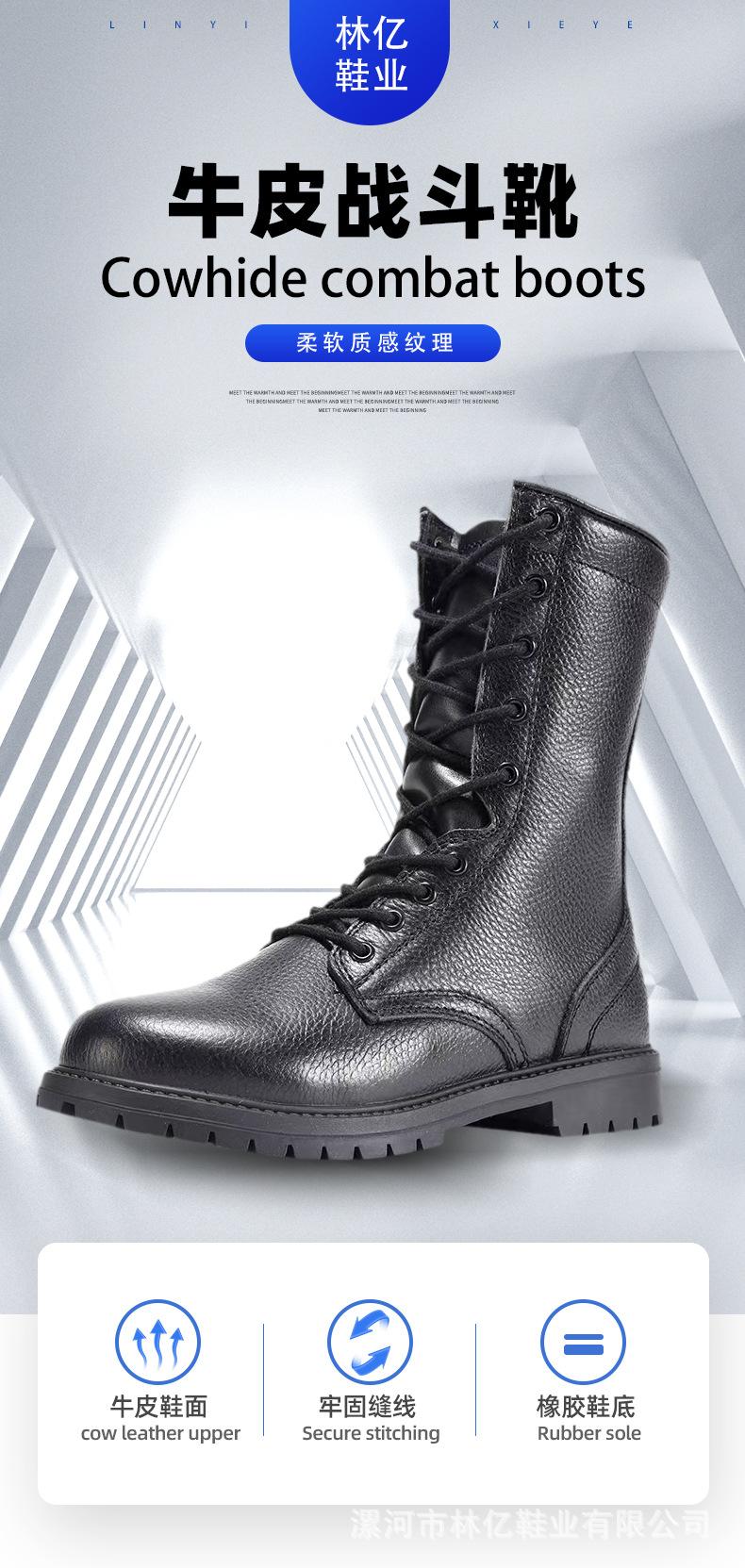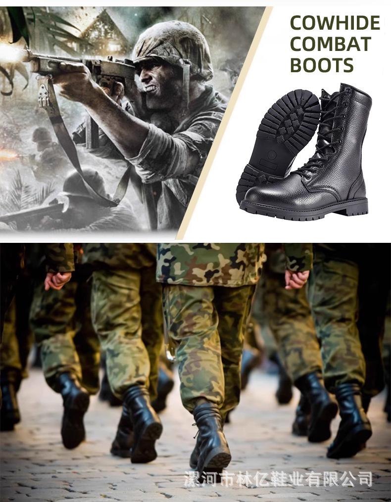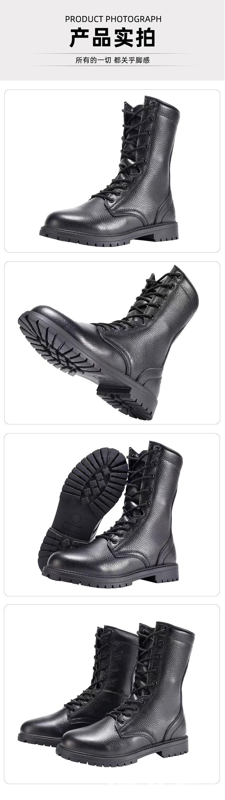 Suministro Transfronterizo de Botas de Combate Nuevas de Caña Alta, Botas de Entrenamiento Antideslizantes para Senderismo al Aire Libre de Cuero Negro, Tácticas Personalizadas