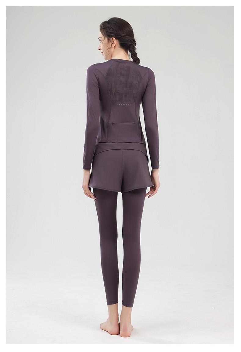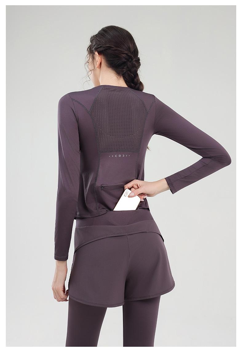 25 Otoño Nuevo Ropa de Yoga Conjunto Deportivo de Manga Larga Mujer Secado Rápido Top de Fitness Bolsillo Trasero Ropa para Correr Gimnasio
