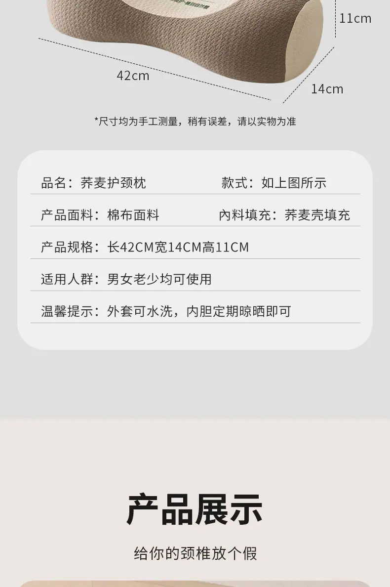 Buckwheat 3D Neck Support Pillow【Coffee Color Pillowcase】