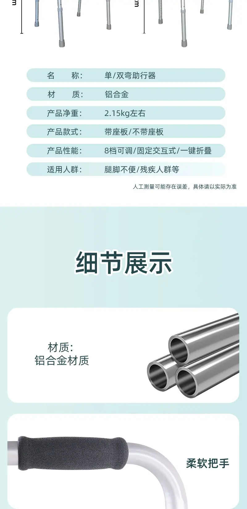 Aluminum alloy single bend walker, Aluminum alloy double curved walker