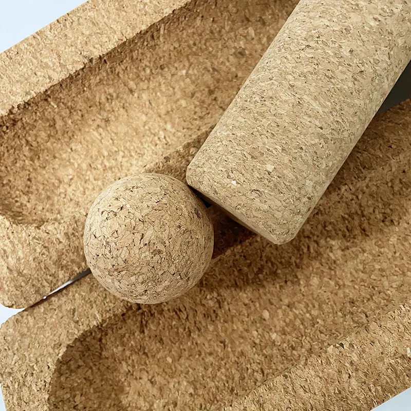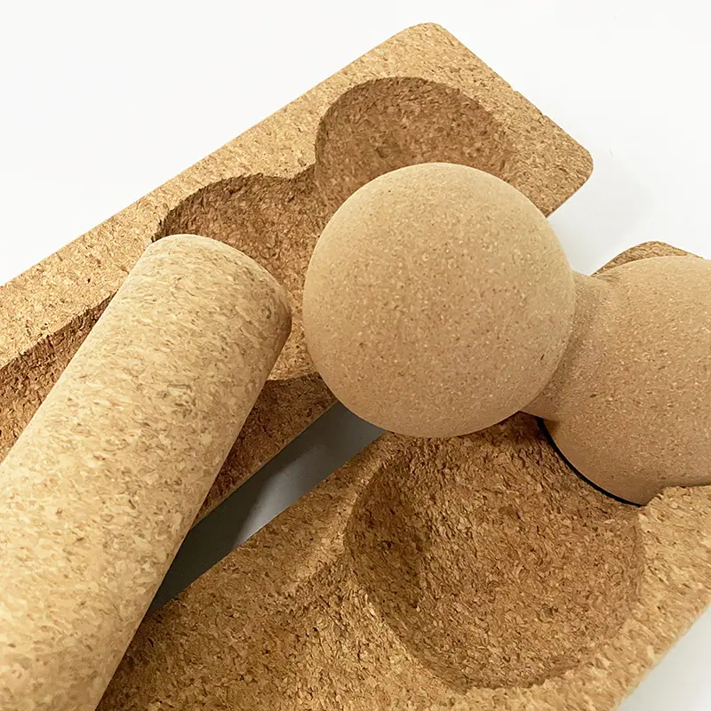 Rodillo de yoga de corcho descomponible que no suelta partículas finas, juego de rodillos de masaje para yoga con bola de cacahuete para yoga