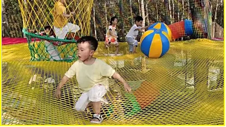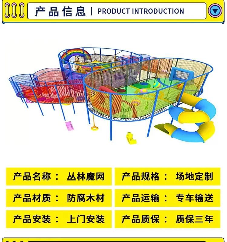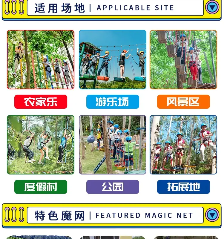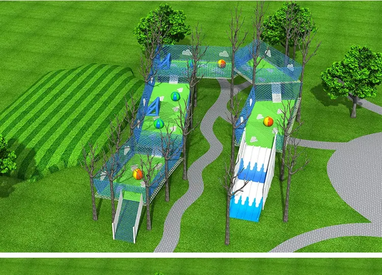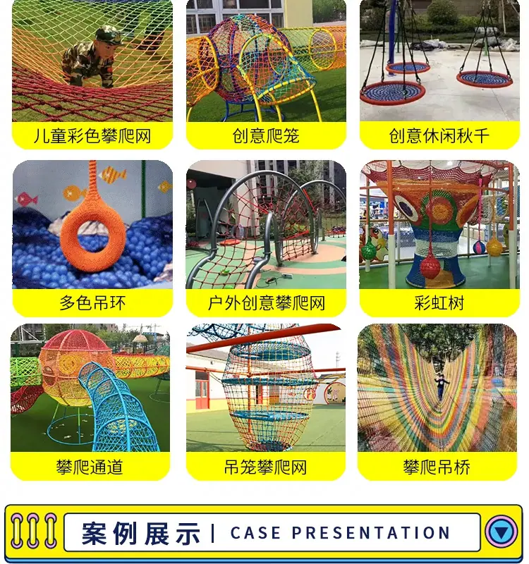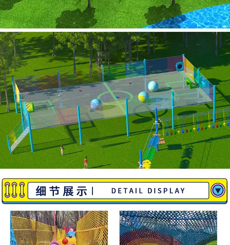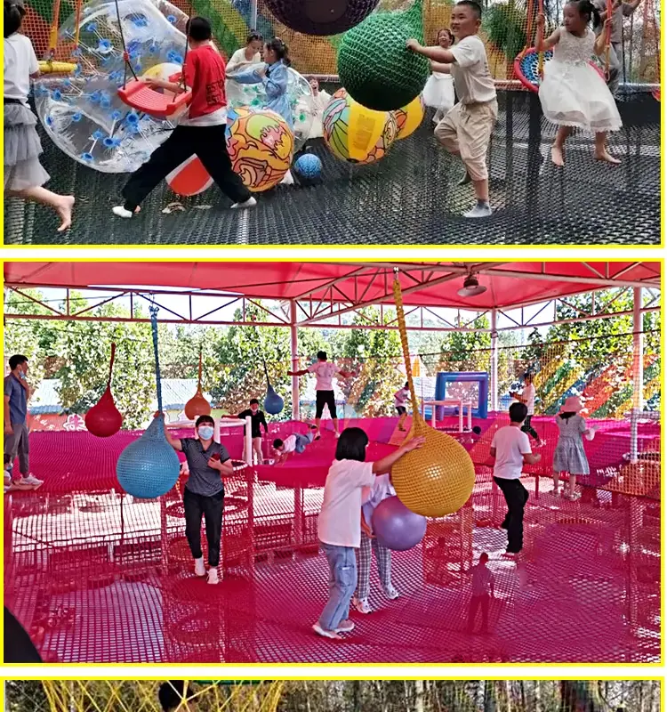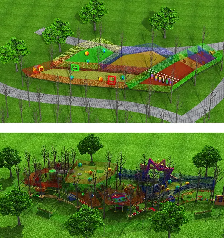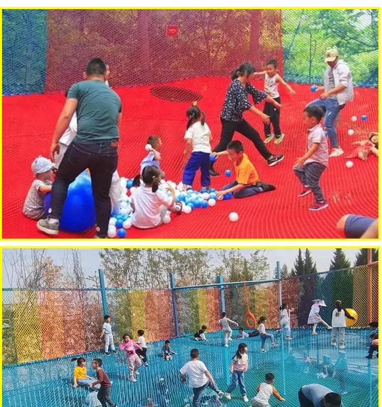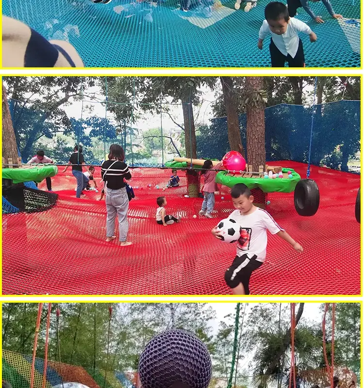 Red mágica de la jungla al aire libre punto escénico cruce de la jungla expansión trampolín red de escalada para niños equipo de diversión grande red arcoíris