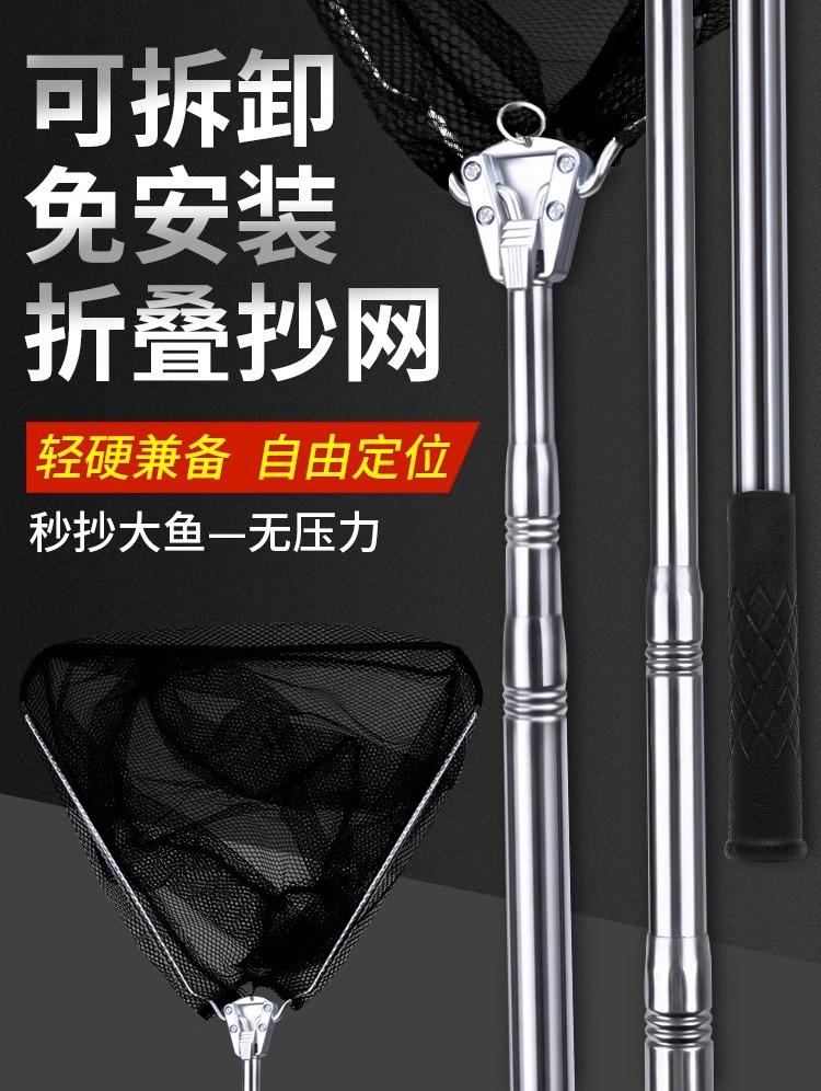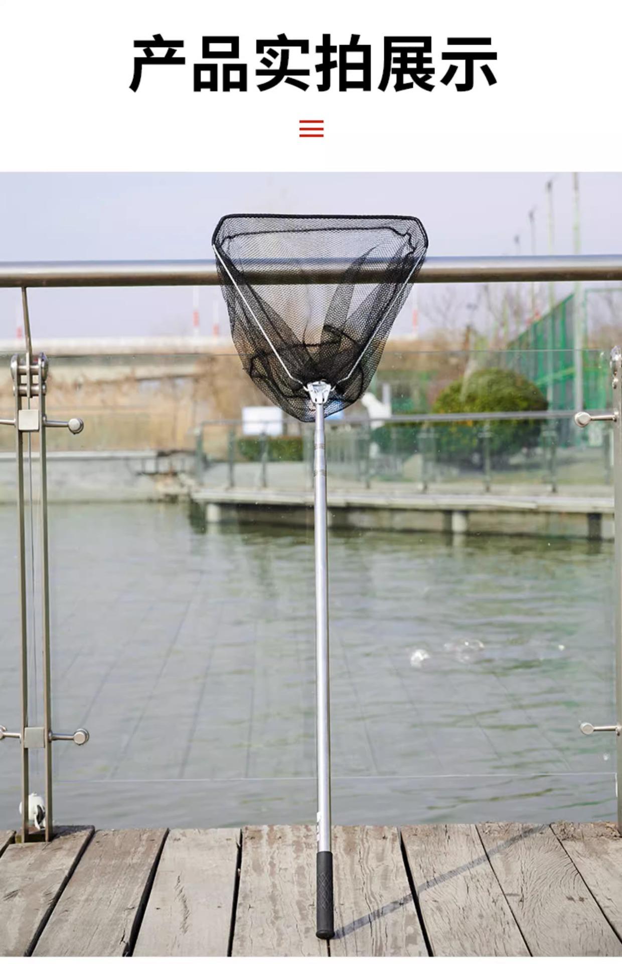 Red de aterrizaje plegable triangular mástil telescópico para red de aterrizaje cabezal de red juego completo bolsa de red de pesca acero inoxidable red de aterrizaje plegable venta al por mayor