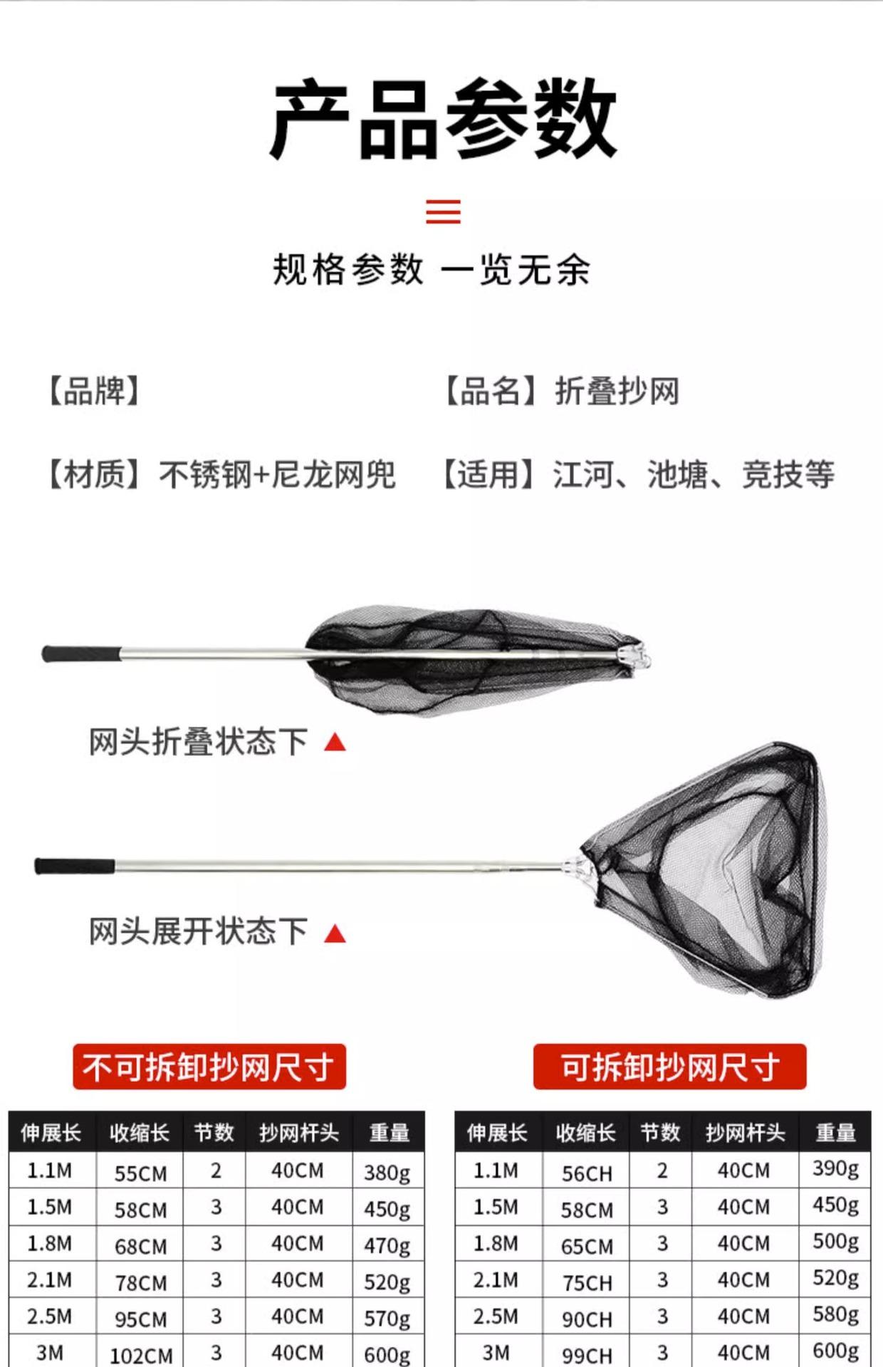 [1.5m] Deepened solid folding scoop net [replaceable and removable net head]