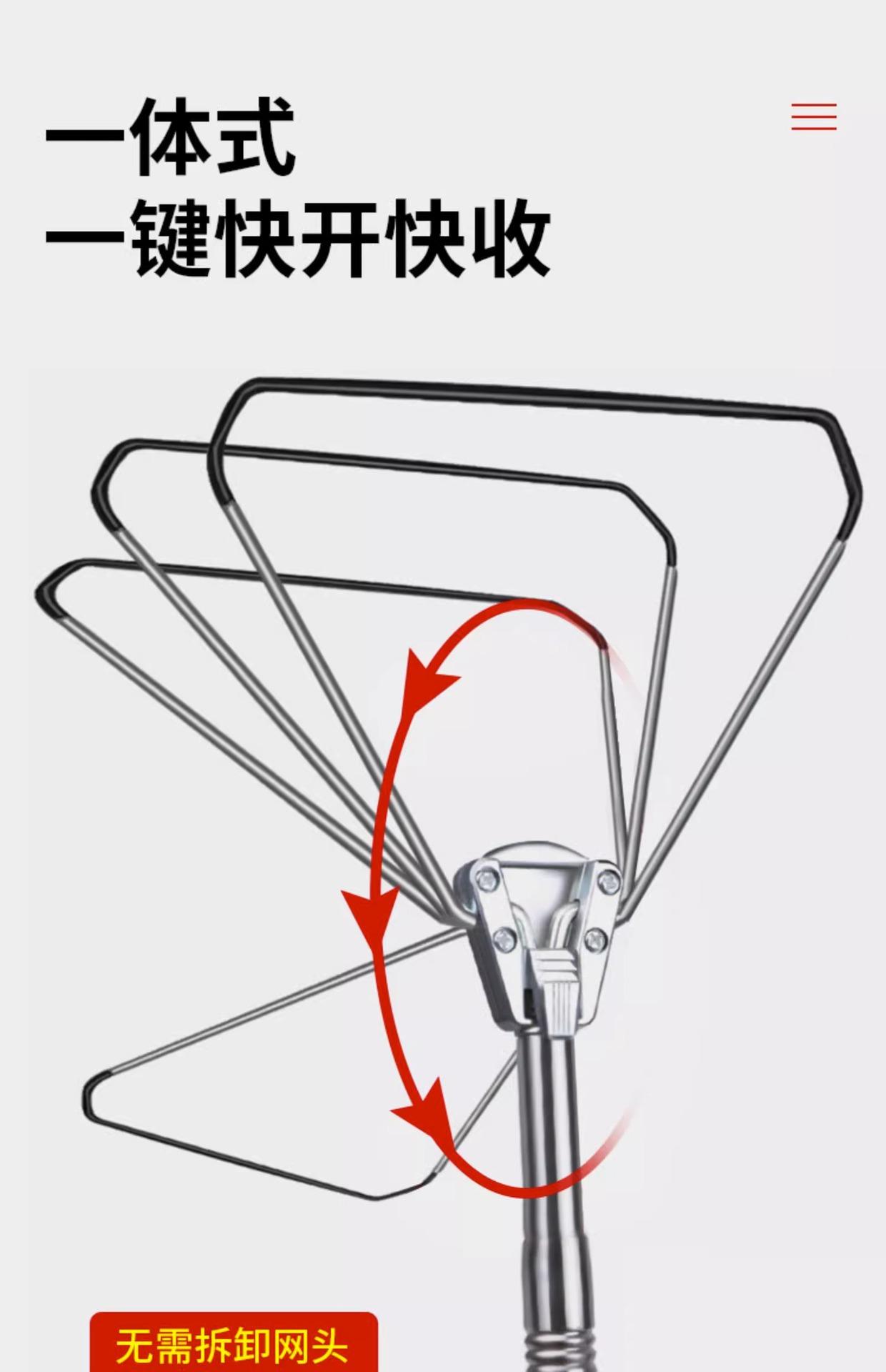 【2.5 meters】Installation-free landing net【Triangular one-piece solid net head】