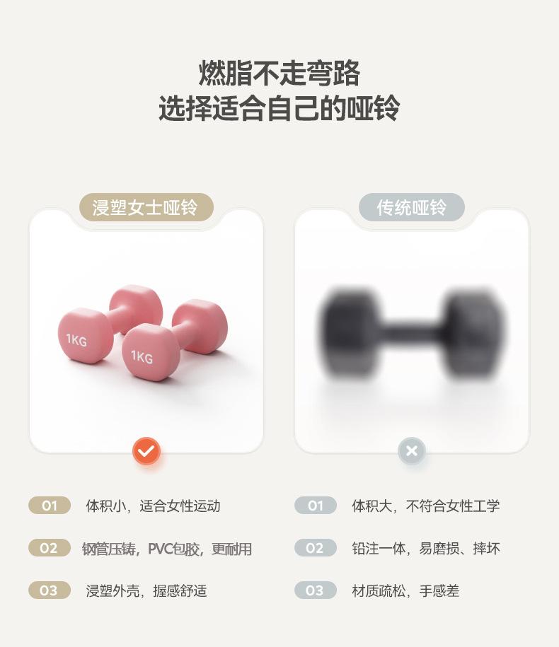 Mancuerna de Mango Delgado Fitness para Mujeres Equipo para el Hogar Mancuerna Pequeña Moldeada por Inmersión en PVC para Adolescentes 2 kg el Par