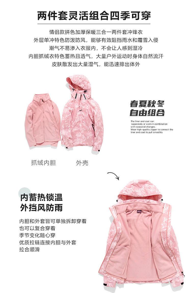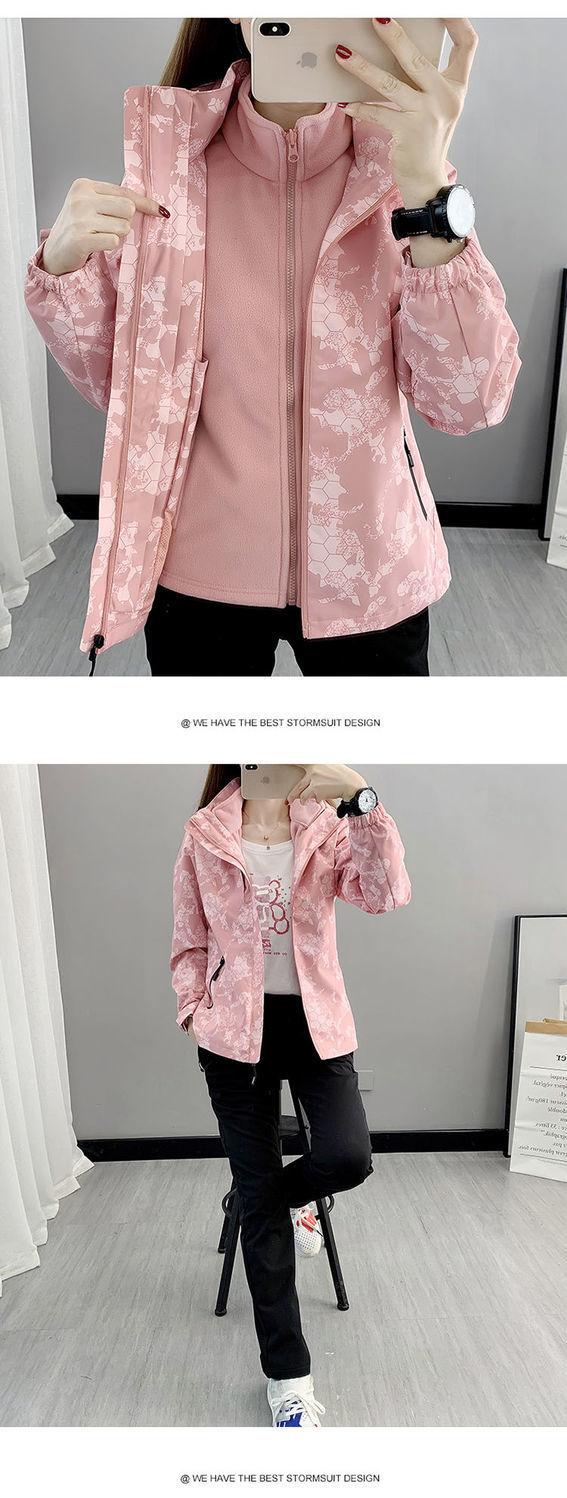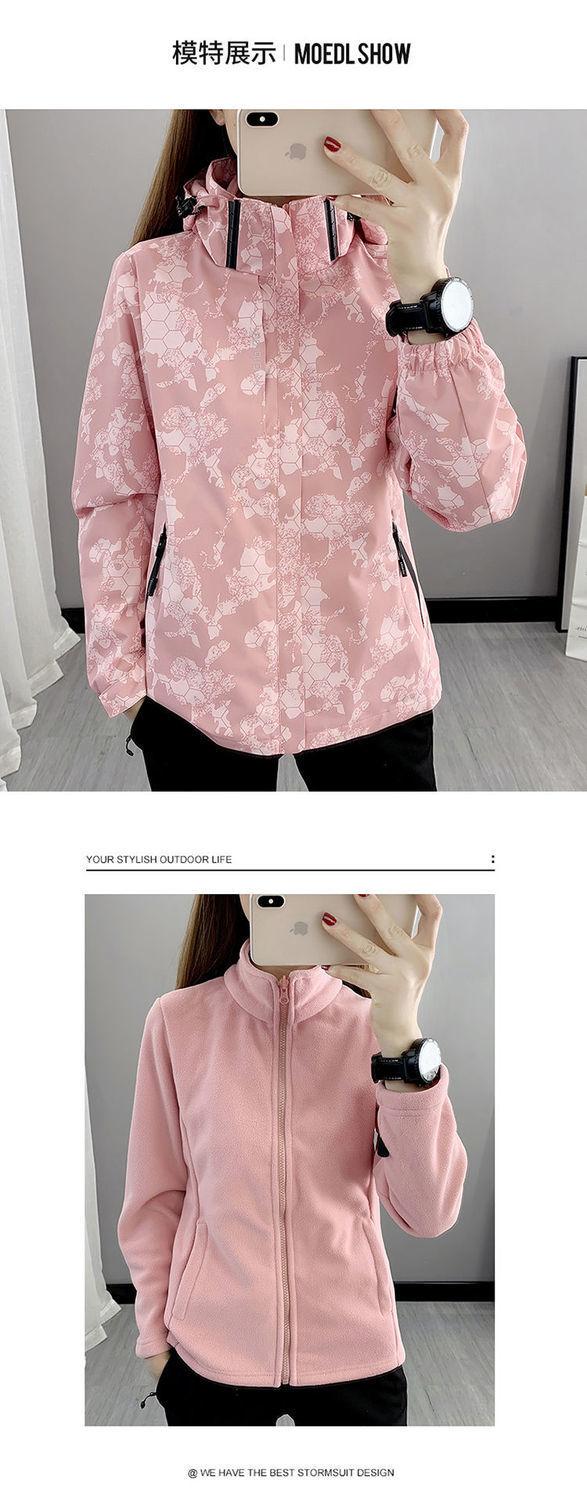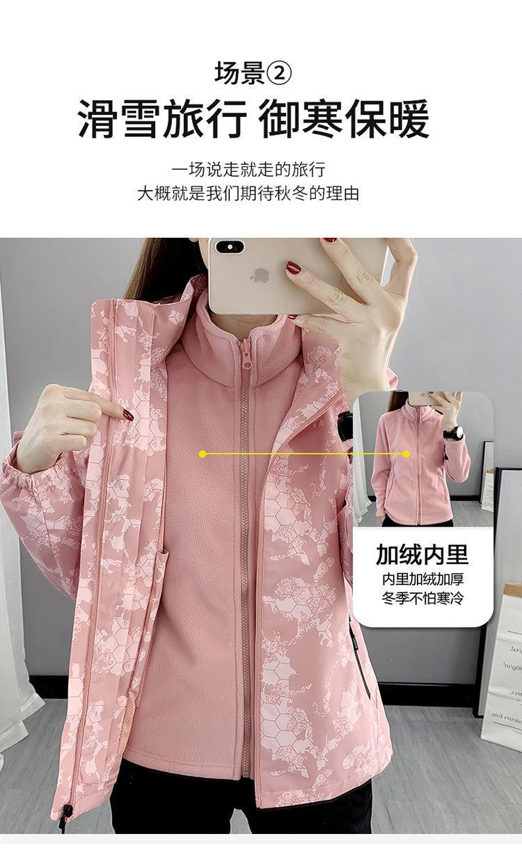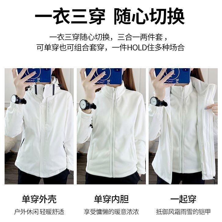 Conjunto de dos piezas para mujer 3 en 1 con forro polar engrosado, estilo nuevo, desmontable, para montañismo al aire libre, resistente al viento, impermeable