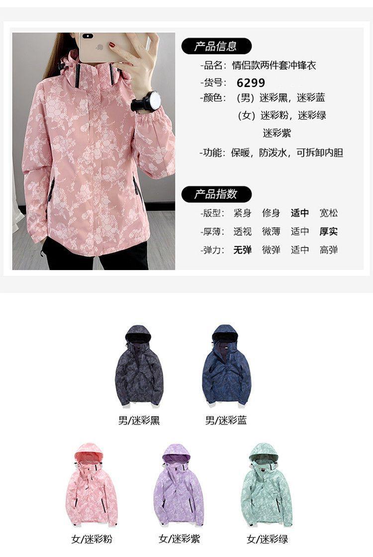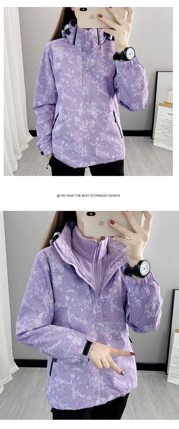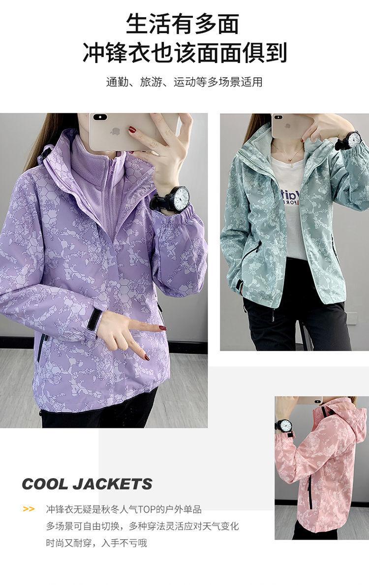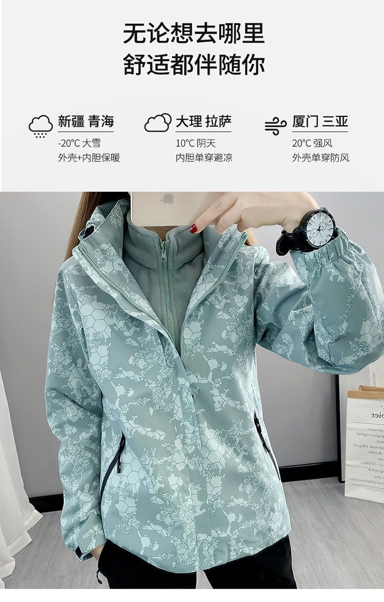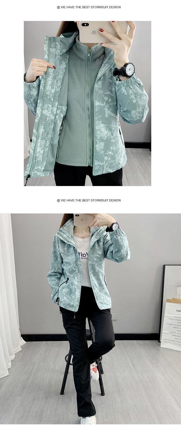 Conjunto de dos piezas para mujer 3 en 1 con forro polar engrosado, estilo nuevo, desmontable, para montañismo al aire libre, resistente al viento, impermeable