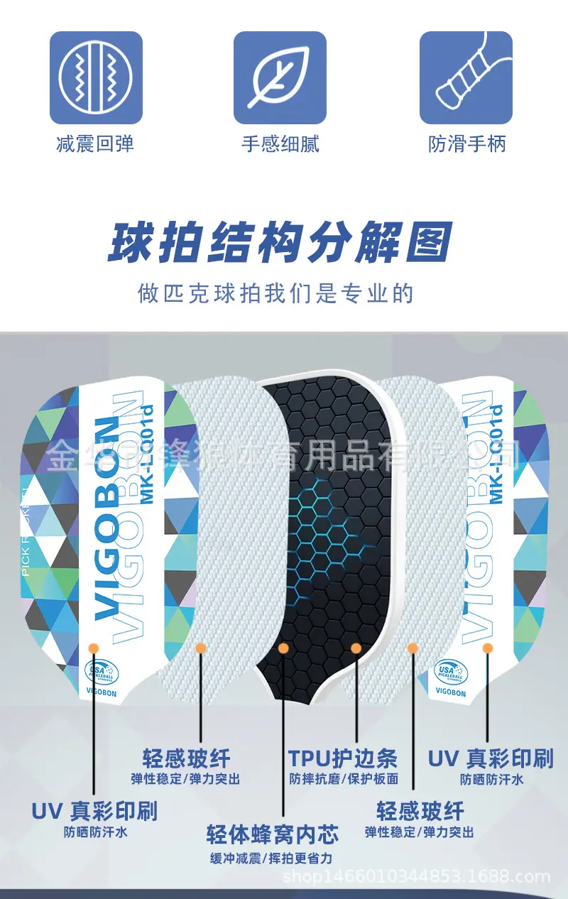 Set combinado de raqueta de pickleball de fibra de carbono para pickleball transfronterizo, entrenamiento de competición, raqueta de fibra de vidrio con núcleo de nido de abeja de PP