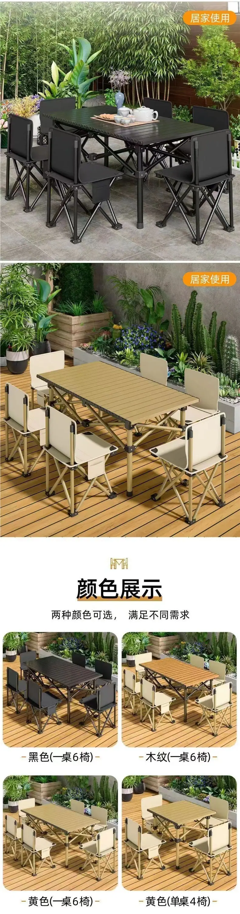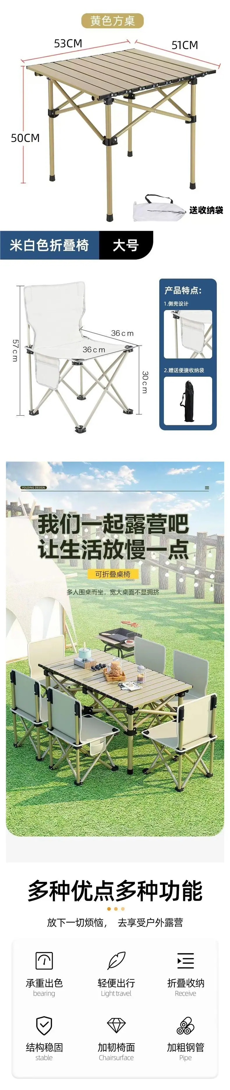 Mesa Plegable Mesa de Exterior y Juego de Sillas Mesa Engrosada Silla Robusta Portátil Camping Barbacoa Picnic Puesto Callejero Parque