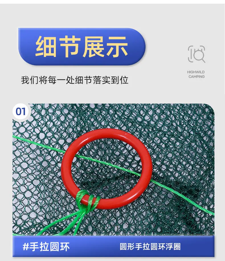 Double layer 10 holes diameter 50cm (20 packs of bait + luminous beads + drawstring + bait bag + floating ring)