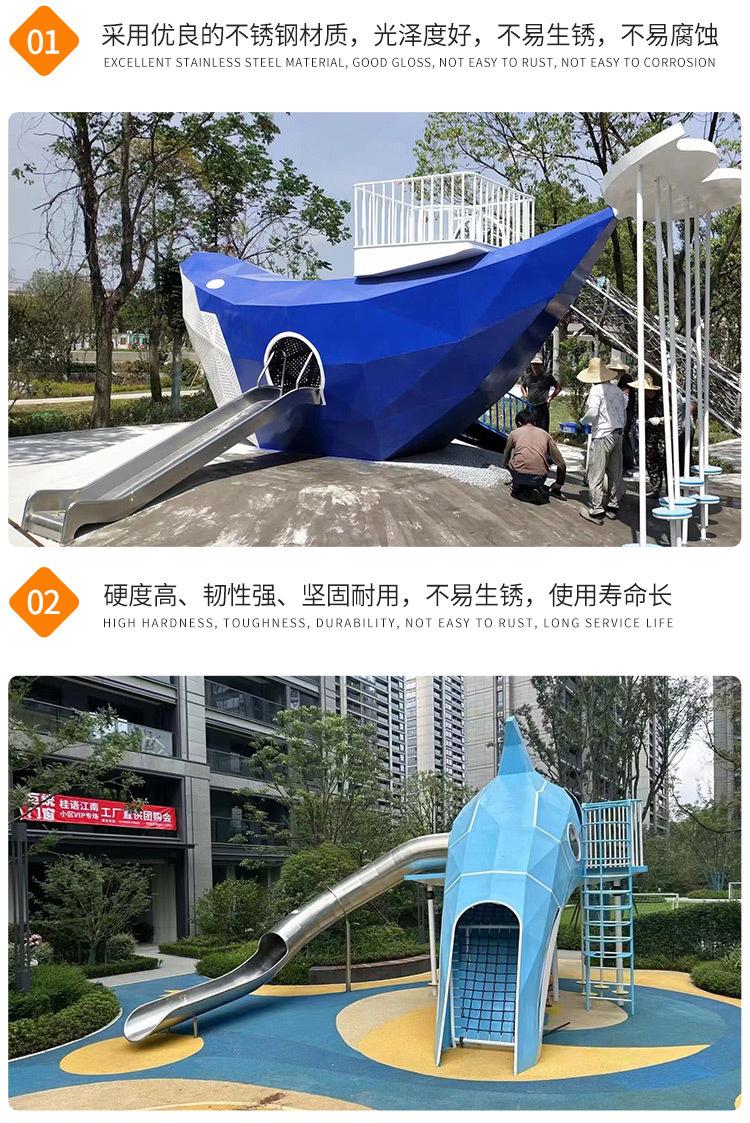 Cápsula Espacial Comunitaria al Aire Libre Puente Corredor de Acero Inoxidable Parque Tobogán Ballena Equipo Instalaciones de Parque Infantil No Motorizado para Niños
