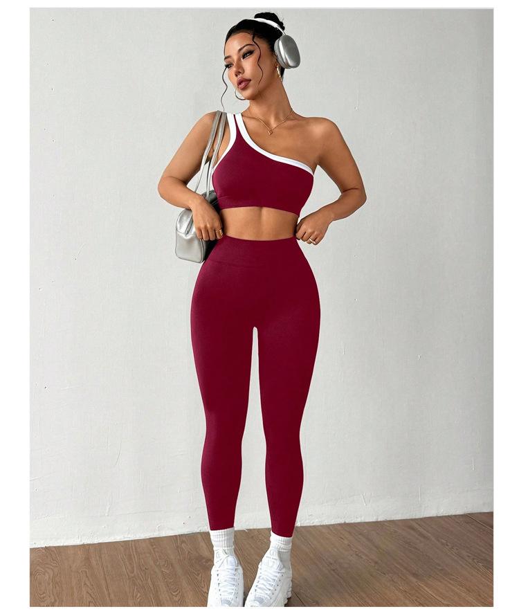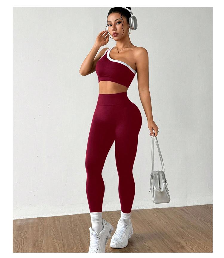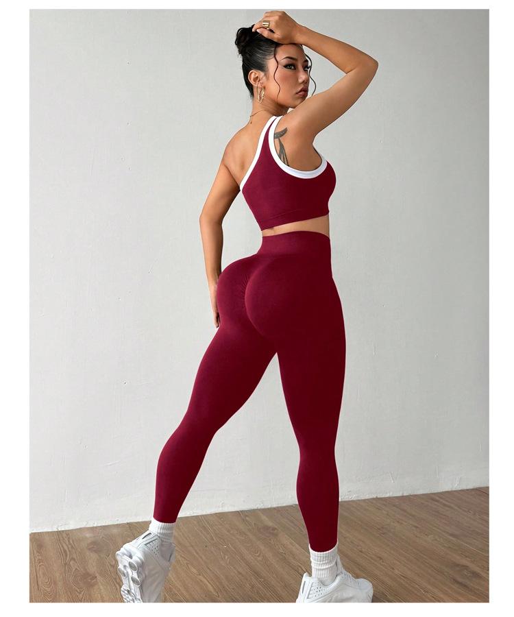 Conjunto de Traje de Yoga Color Block para Mujer Estilo Nuevo Europeo y Americano Ajustado Elástico Cadera Melocotón Ropa de Fitness Conjunto Deportivo Ropa de Otoño e Invierno