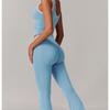 Compra Conjunto deportivo de cintura alta acampanado transfronterizo para mujer, conjunto de yoga ajustado con espalda descubierta y bloques de color, ropa de yoga para fitness y running al por mayor en Joom.pro