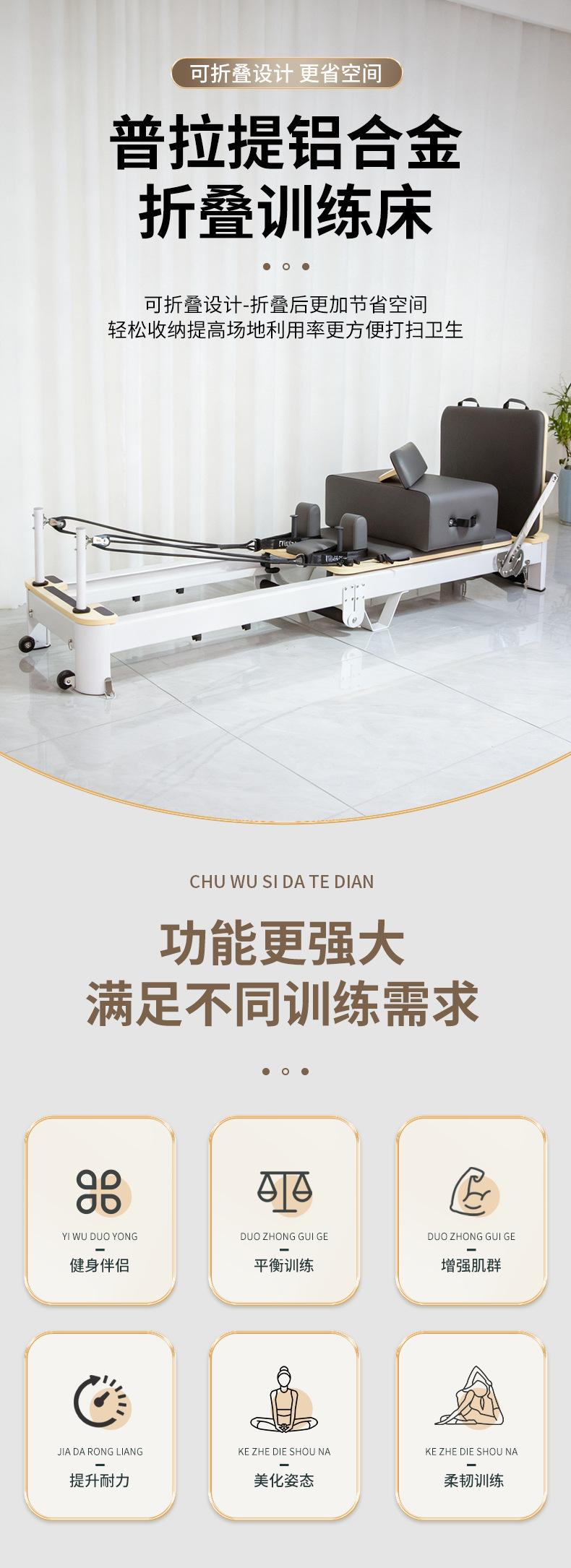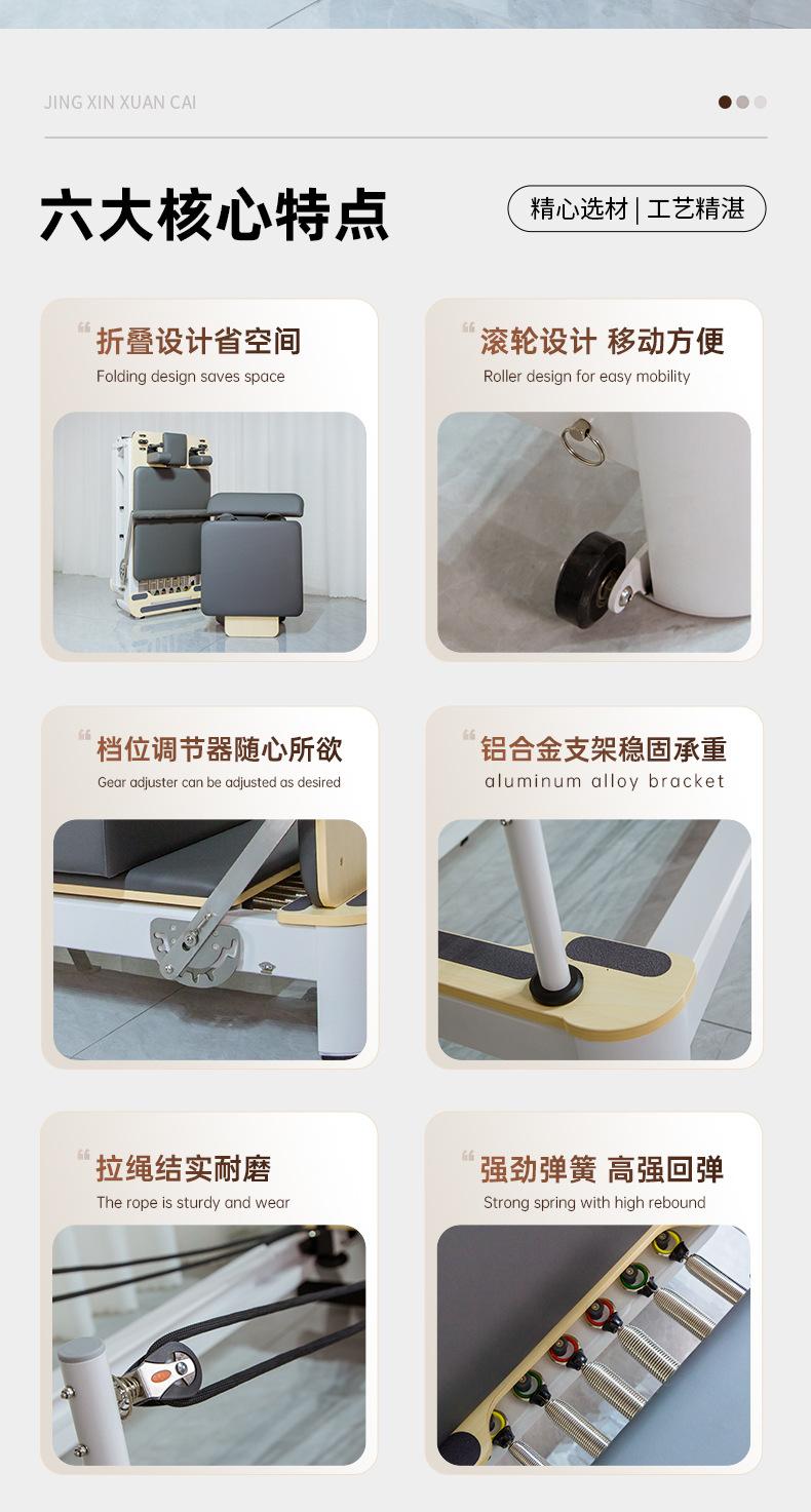 Cama Pilates de Aleación de Aluminio con Núcleo Plegable Equipo de Gimnasio para Estudio de Yoga Pista Completa Cama de Aleación de Aluminio con Núcleo