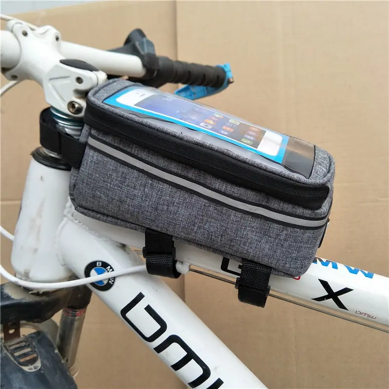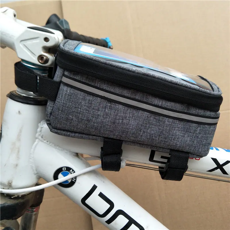 Introducción】Esta bolsa de manillar puede guardar teléfonos móviles y pertenencias personales. Adecuada para varios tipos de bicicletas como bicicletas de carretera, bicicletas de montaña, etc. Nuevo diseño, mano de obra fina, acolchado antichoque, conveniente para colocar artículos pequeños como teléfonos móviles, cámaras, herramientas, etc. (Sin funda para la lluvia, si es necesaria, se puede personalizar)