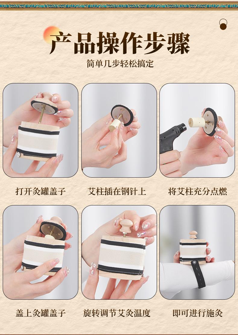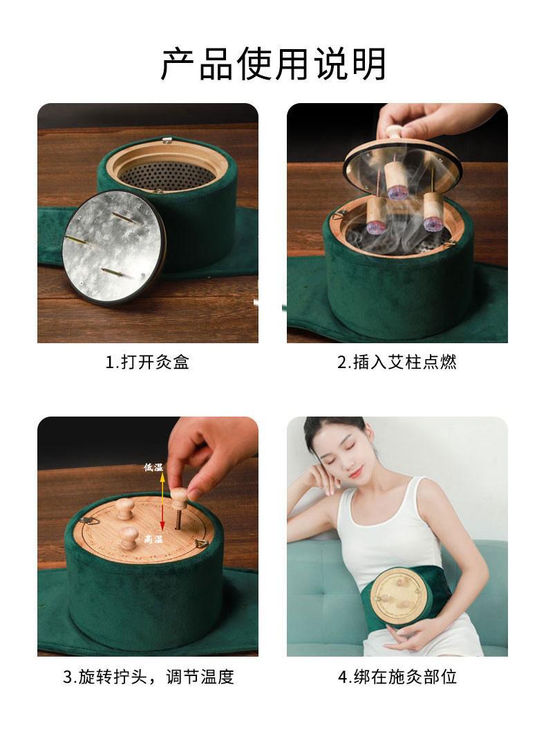1 set of large three-acupuncture box + 54 aged moxa sticks + brush + picture